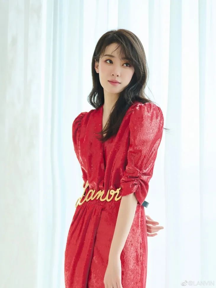 偶爾也會呈現霸氣一面,張小斐的LANVIN日常青睞豪華面料打造的裙裝,金色腰帶加持復古格調,一顰一笑間盡顯高貴嫵媚。