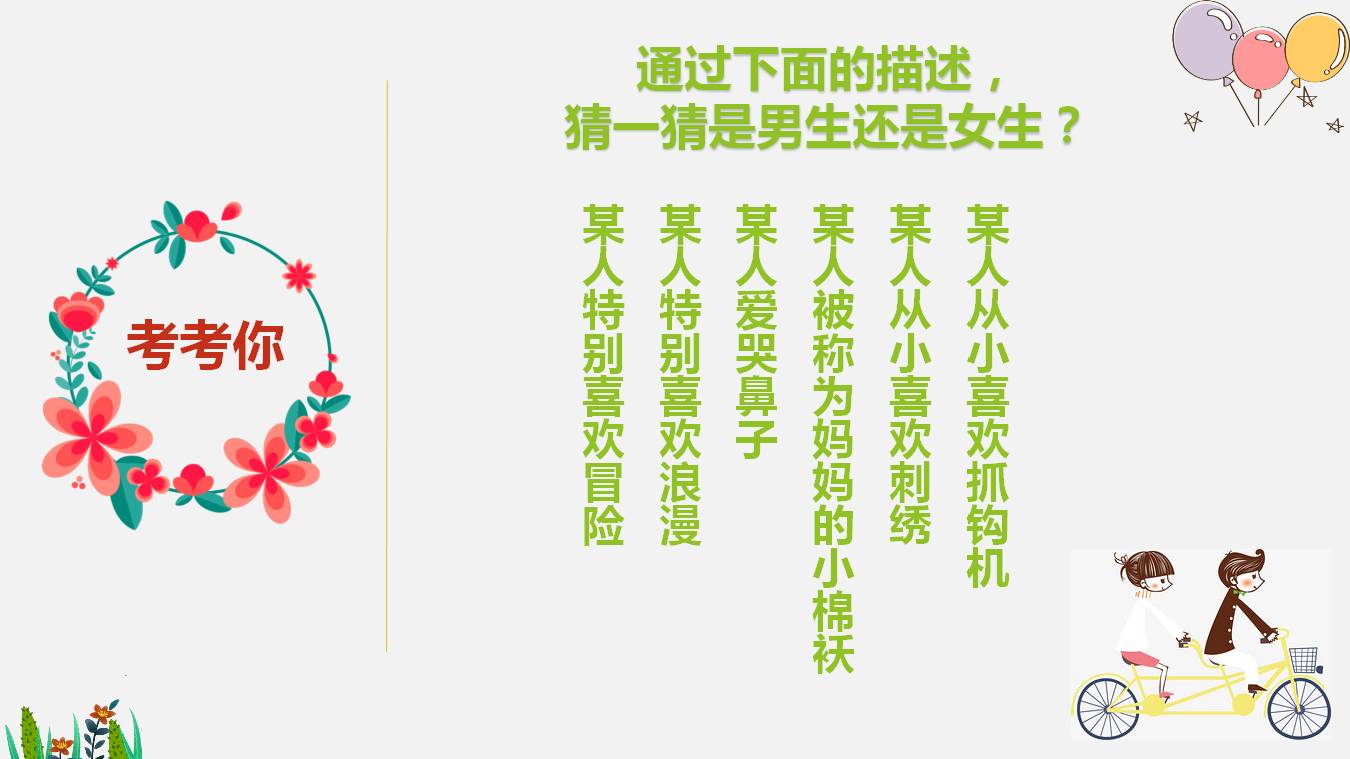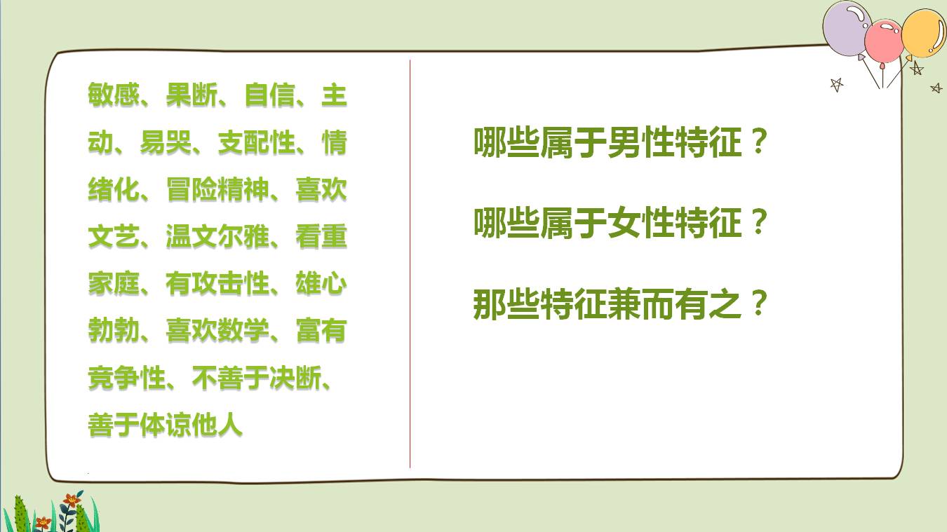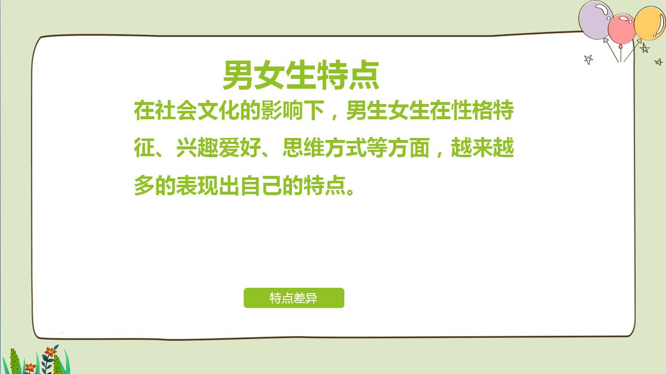 青春期教育課件,男生女生生理性格特征興趣愛好思維方式上的差異