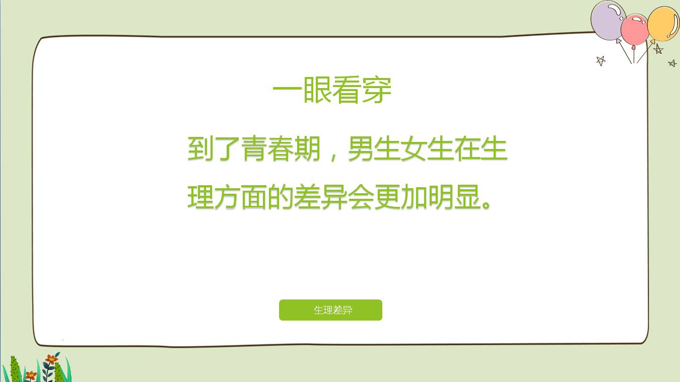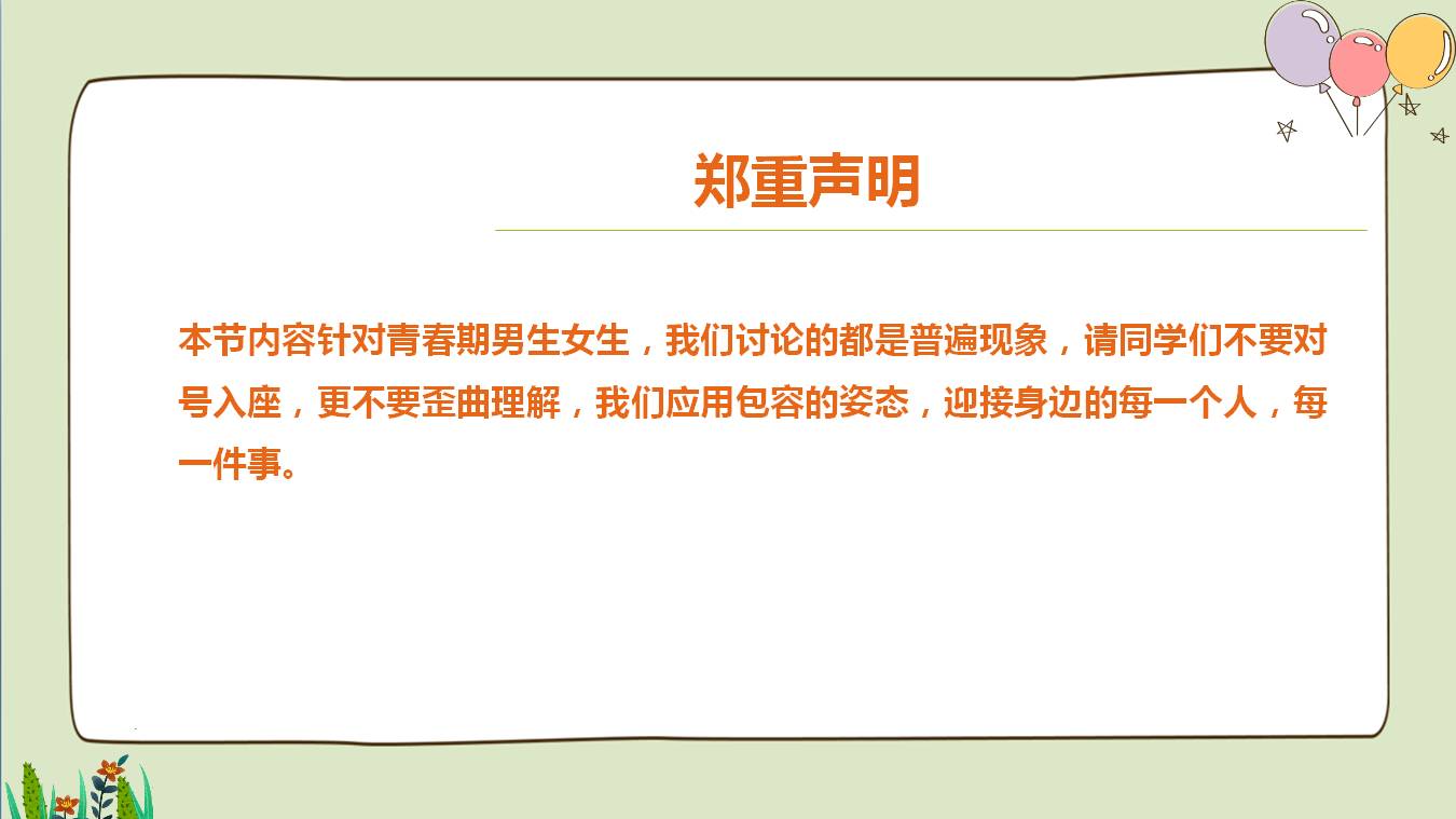 男女生的性別特征是與生俱來的,對於青春特有的生理變化,我們應平靜而欣然地接受。