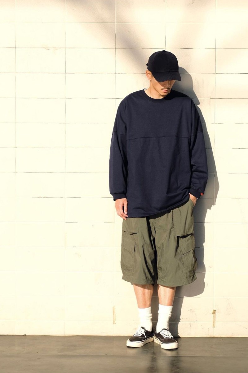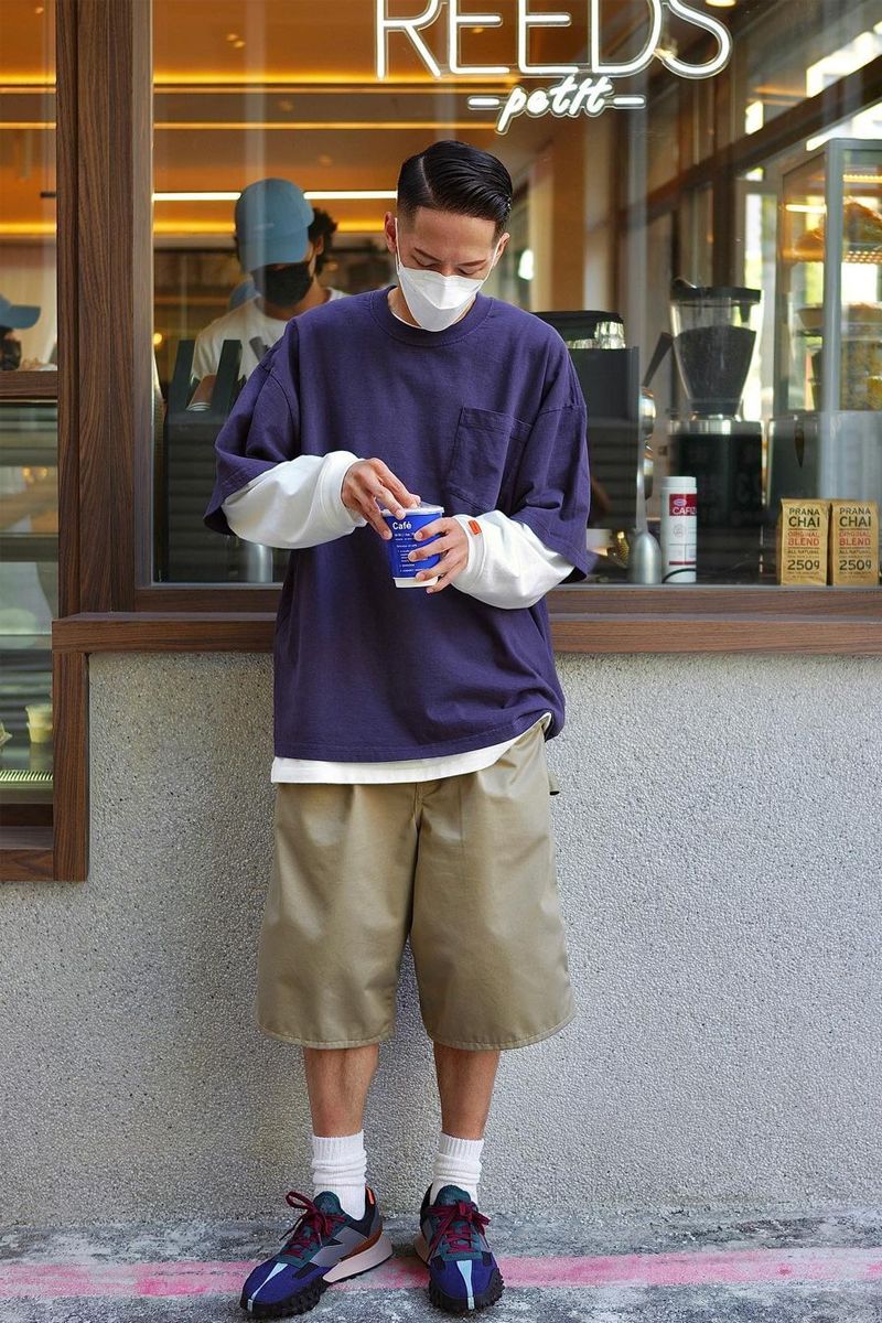 但是這種類型的褲款,長度不宜太短和太緊,不然會變身「社會小夥」,以oversize為主調,五分褲型搭配衛衣,造型看起來時髦前衛。為了避免形象過於簡單,還可以通過選擇一些長襪來搭配,這樣能夠讓穿搭更加的豐富且有層次感。