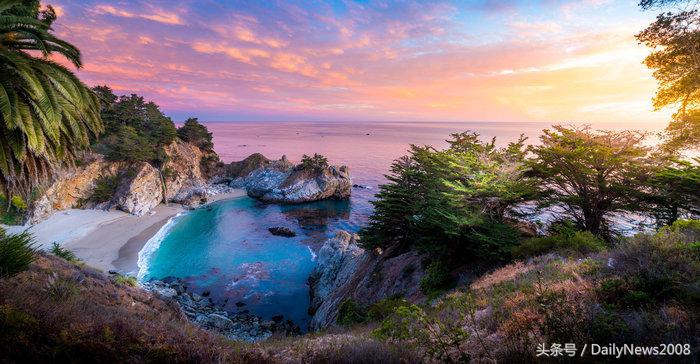 壯觀的風景意味著在加利福尼亞海岸線上的一次絕妙的旅程,如Pfeiffer海灘和McWay瀑布,這是一個美妙的地方建議或停止遊泳,因為瀑布免費從海灘落入大海。