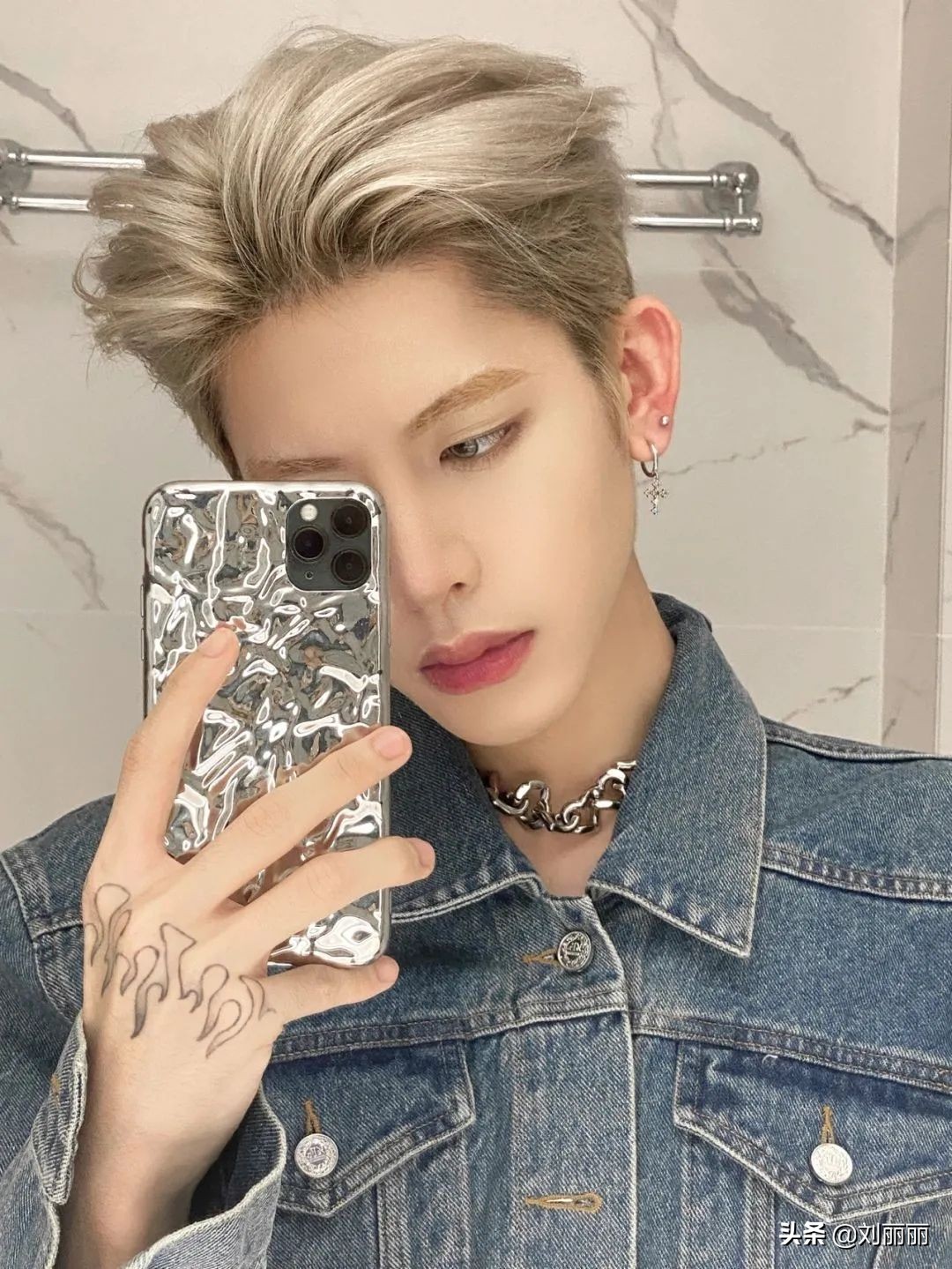 短碎發配上粉色的染髮,瞬間變身花美男,引得無數女粉的尖叫。