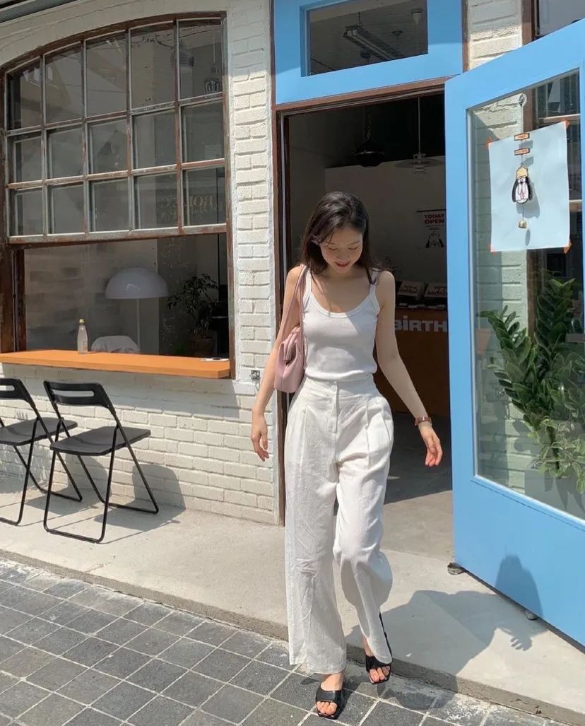 在穿搭時記住這個公式「上窄下寬」,顧名思義,由於上半身的身材比較纖細,因此可以選擇合身或者修身的款式,把纖細的腰身展現出來,也可以穿短款的上衣,露出腰部,進一步放大上半身的優勢。