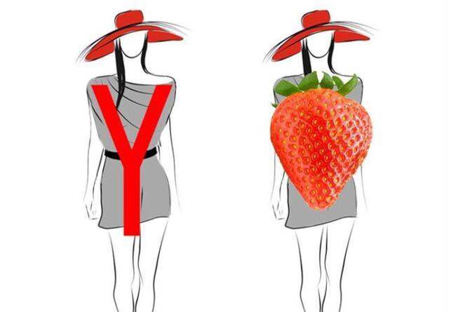 草莓型身材的特點是上半身的骨架大、肩寬,四肢纖細。由於肩膀比較寬,在別人眼裡就是行走的衣架子,所以草莓型身材也稱為Y字型身材。如果衣服沒選對,會把上半身撐得很膨脹顯胖,顯得頭重腳輕的感覺,