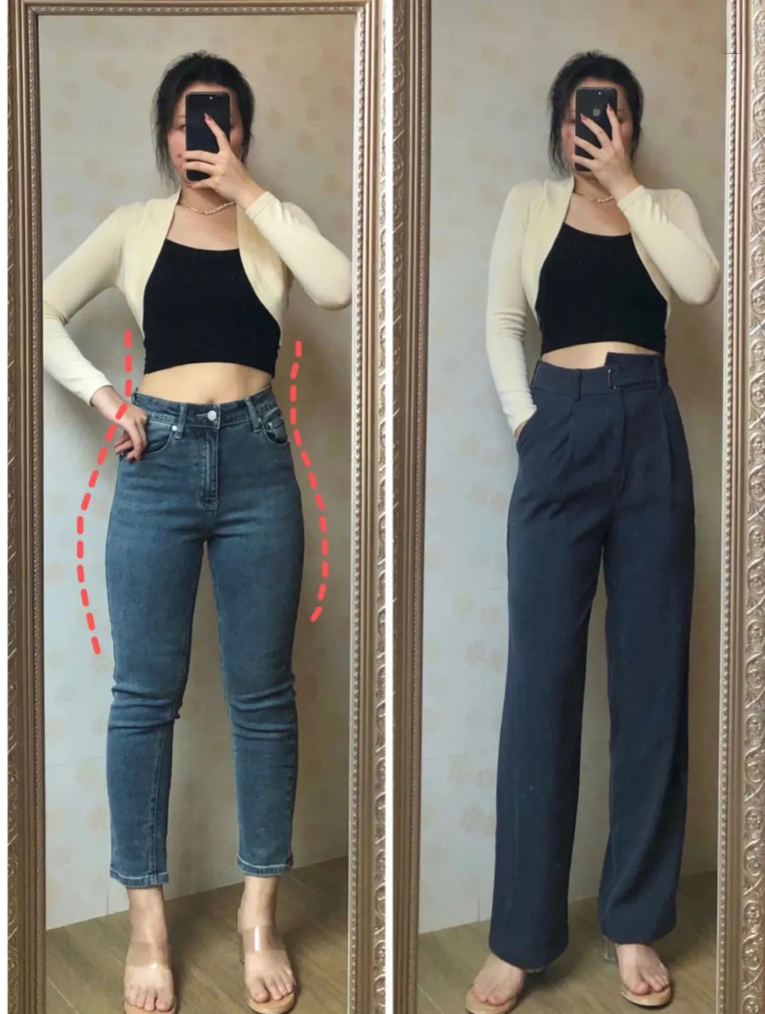 對於梨形身材而言,首先就要避免各種修身版型的下裝,例如緊身褲、包臀裙等,都很容易把胯寬腿粗的事實暴露出來,很顯胖。