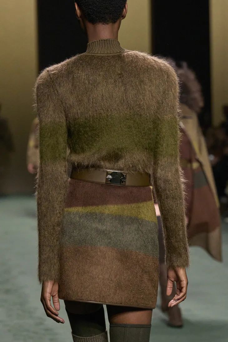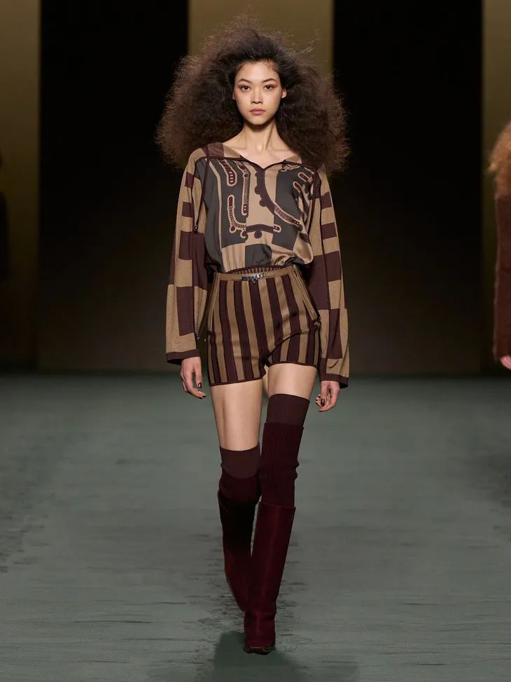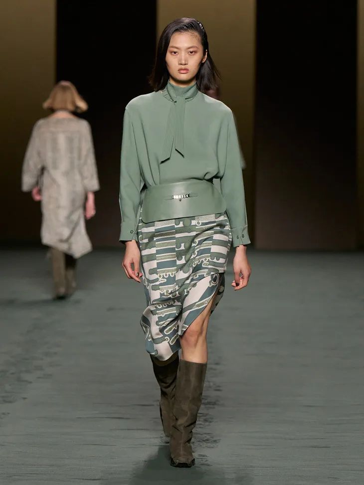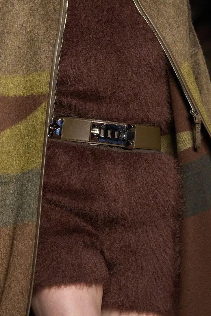 作為一個以馬具起家的品牌,馬術元素在 Hermès 一直貫穿至今。馬鞭、馬鞍巧妙地結合到時裝之中,成為無法忽視的裝飾。
