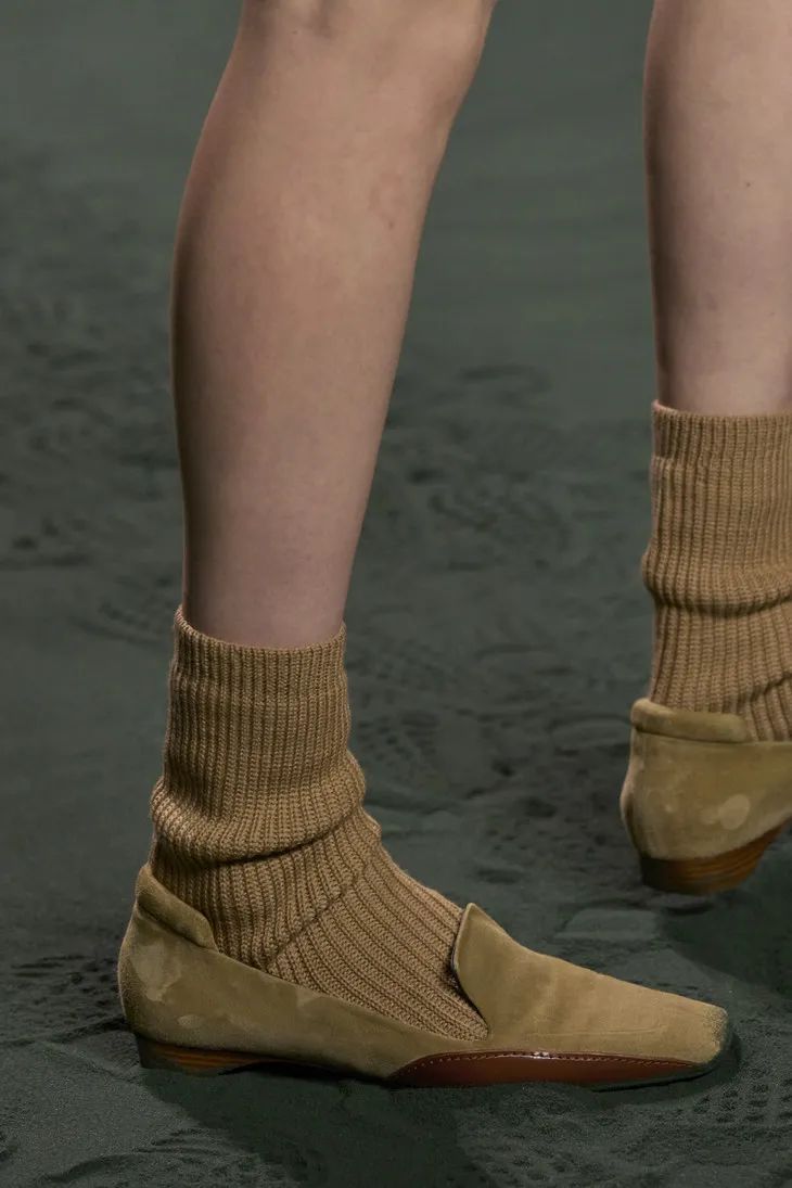 馬靴被重新設計,多採用針織和絨面的搭配,以芭蕾舞者的方式重構。針織進一步豐富鞋、襪的多樣性,充分展現了 「輕盈」質感。
