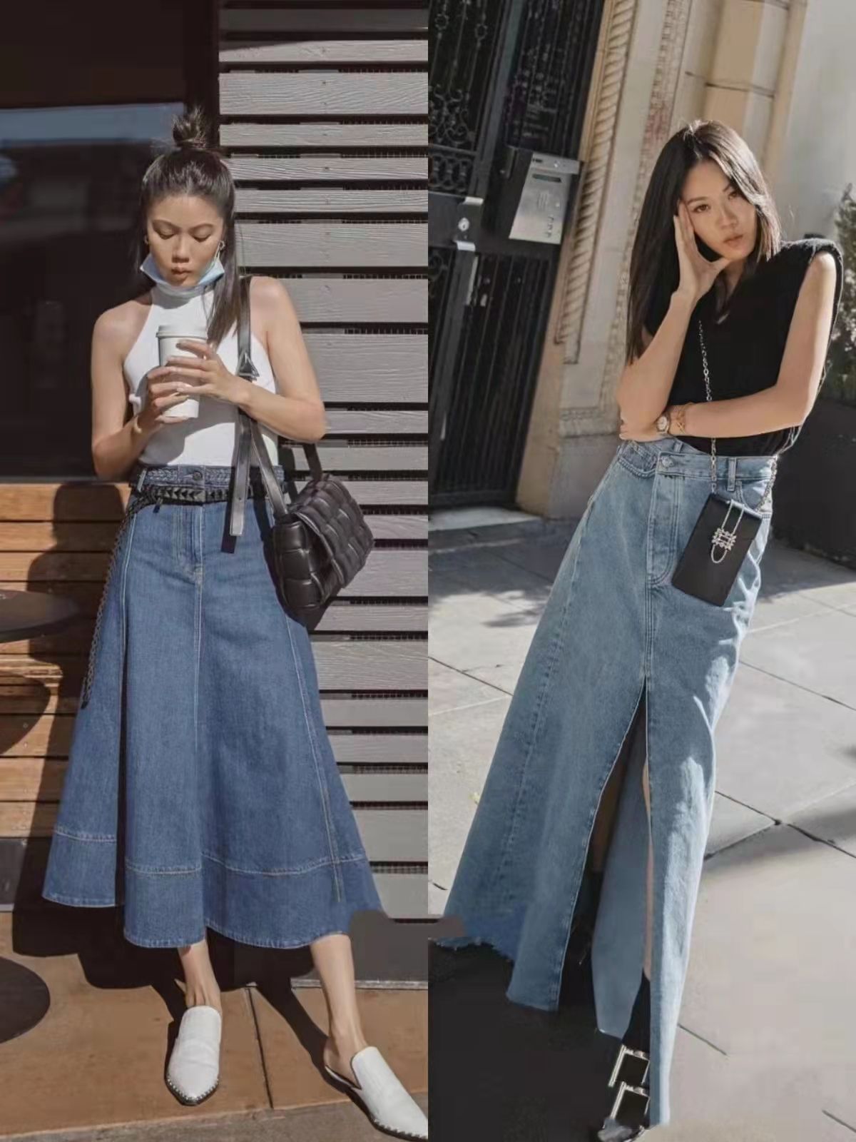 修身款式的小上衣穿在身上可以通過適度勾勒的款式剪裁方式來呈現出身形上的纖細感和骨感,下半身搭配高腰款式的牛仔半身裙,運用上緊下松的款式搭配方式來呈現出對比的搭配效果,同時下半身寬鬆的牛仔半身裙還可以彰顯出足夠的實用性,舒適感非常強。