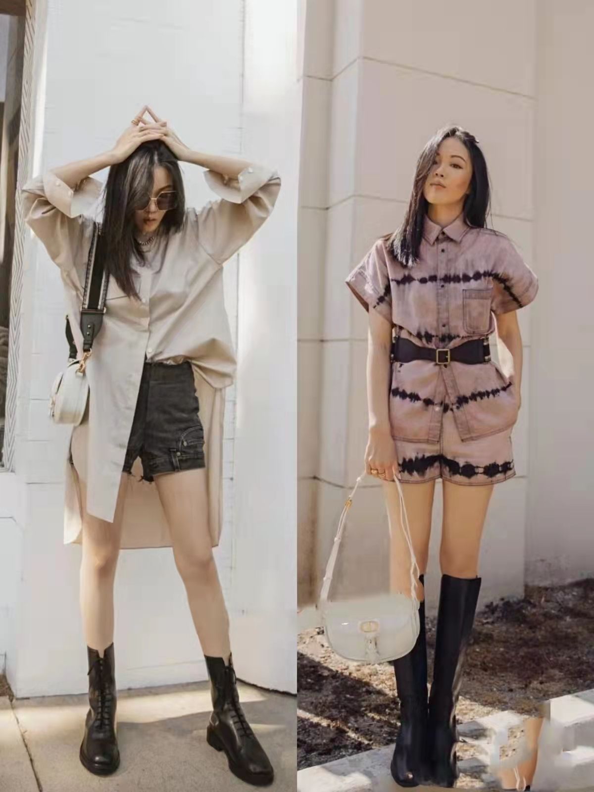 在通身的穿搭中可以從局部入手,在局部的位置上強調出搭配上的重點,例如中長款襯衫搭配短褲,將襯衫一般的衣擺塞進短褲當中,既幹練有型又可以通過左右不對稱的穿衣方式來彰顯出別致感。