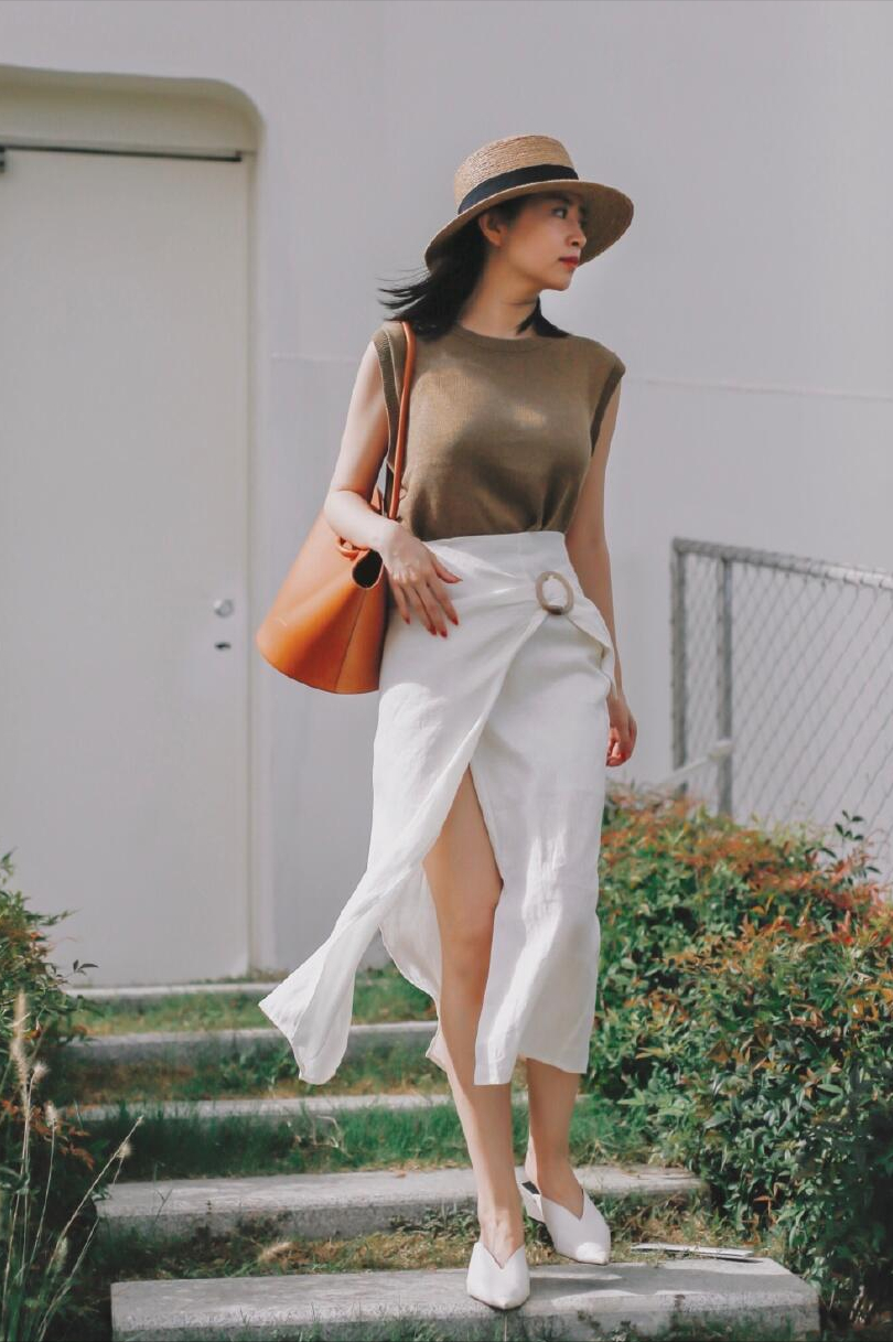 但如果是腿粗也無妨,可以選擇開叉的中長款裙子,開叉的設計可以延伸腿部的線條,向上逐漸收窄,視覺上起到顯瘦的作用,並在行走時若隱若現的露出腿部,神秘感十足。