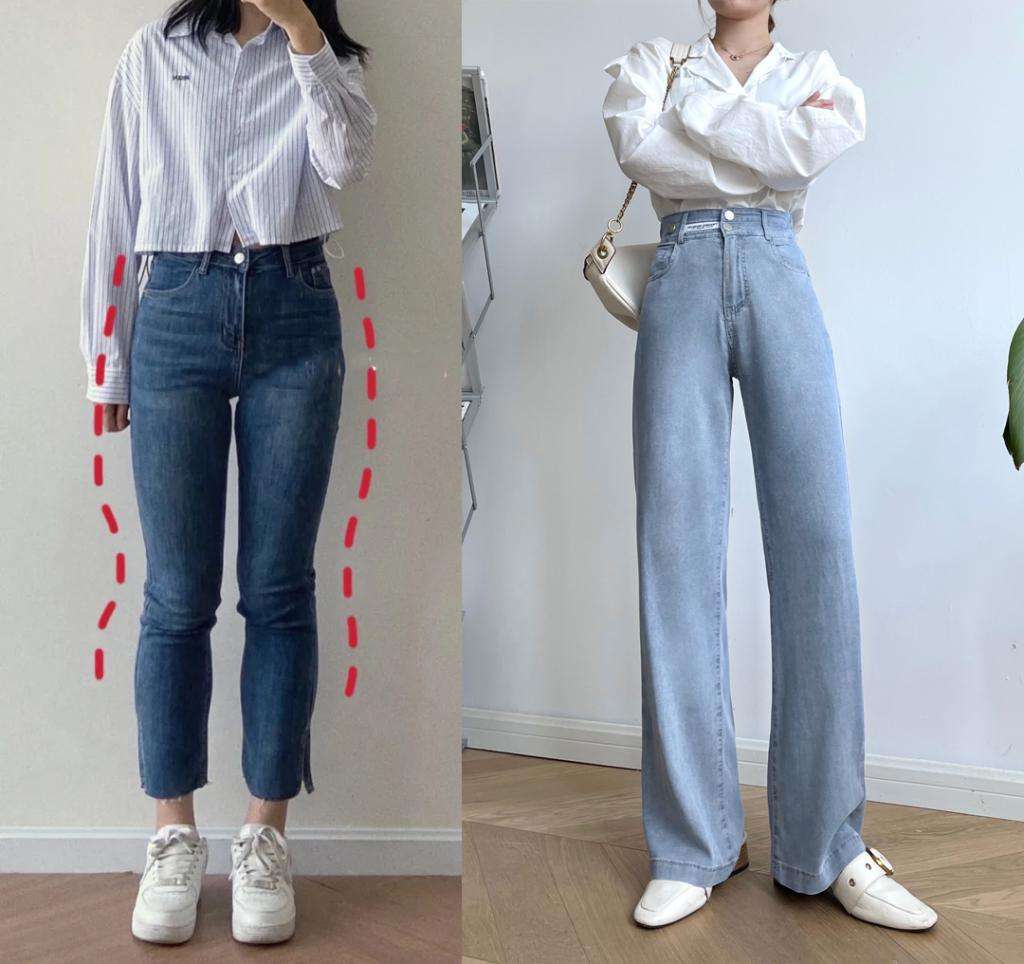 反而是直筒褲、闊腿褲更適合假胯寬的女孩,遮胯顯瘦的同時還能拉長腿型,小個子可以照著穿。