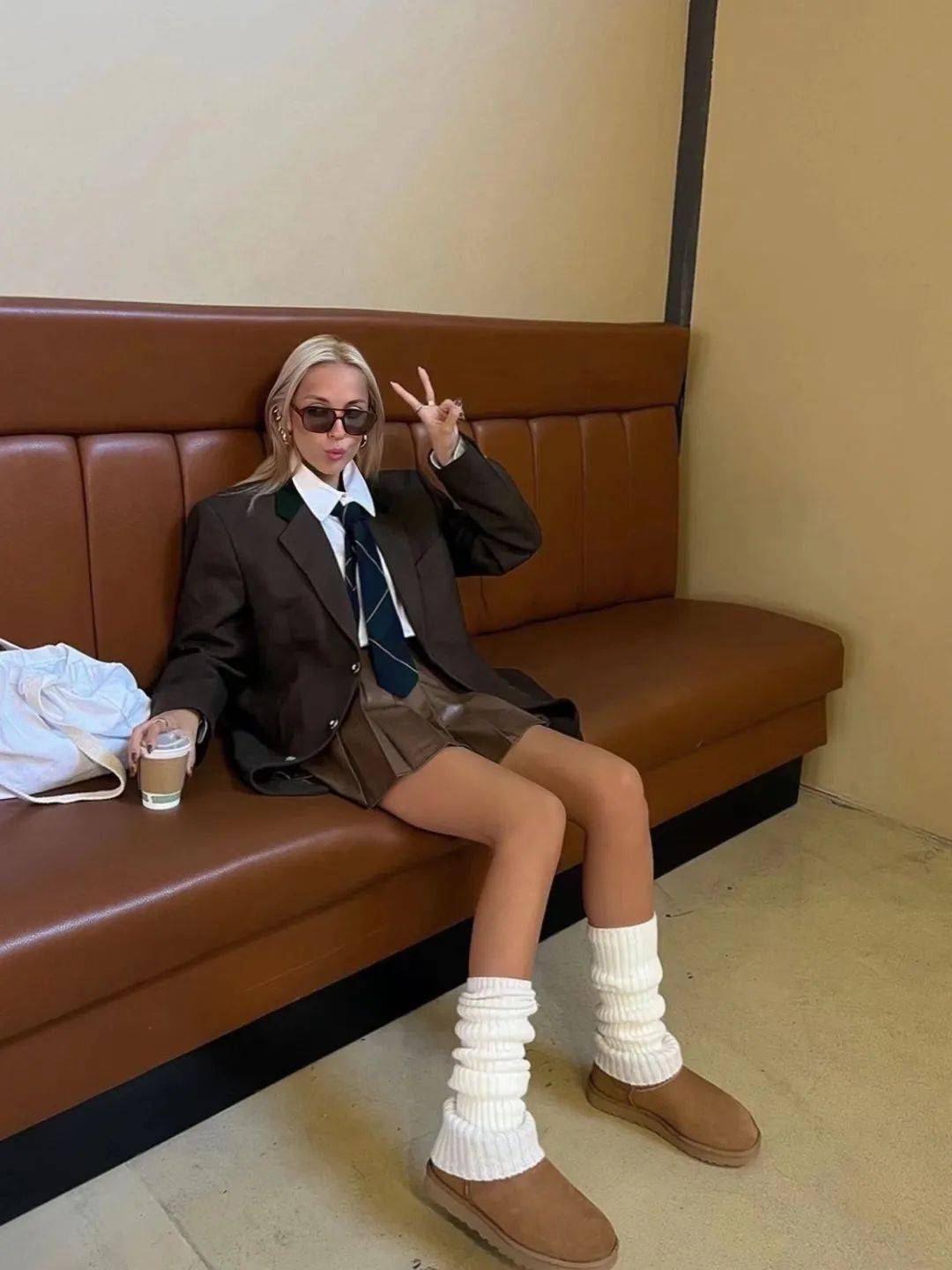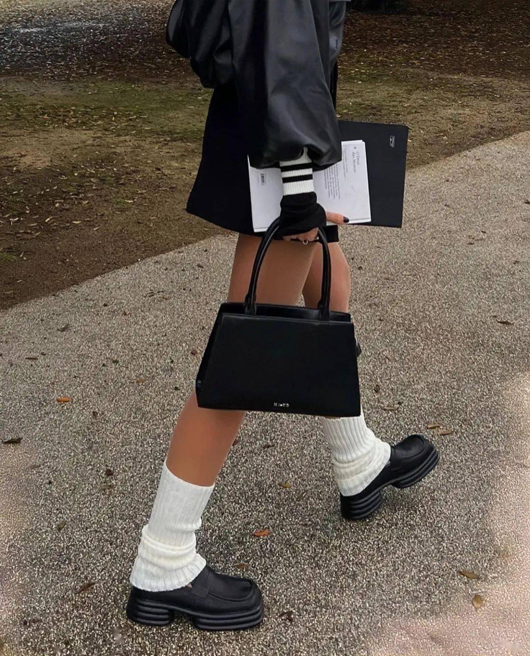 中筒堆堆襪看起來松松垮垮,仿佛下一秒就要掉落,但是這種款式可以完美修飾小腿肚。 ▼