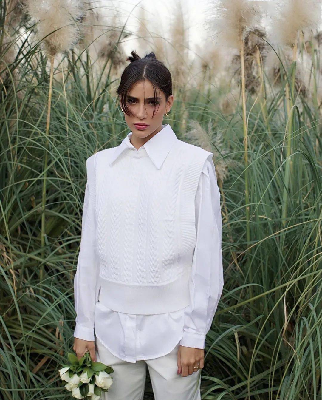 針織背心疊搭襯衫最不挑人,豐富的層次感會立馬讓人顯得有氣質,塑造性極強。 ▼
