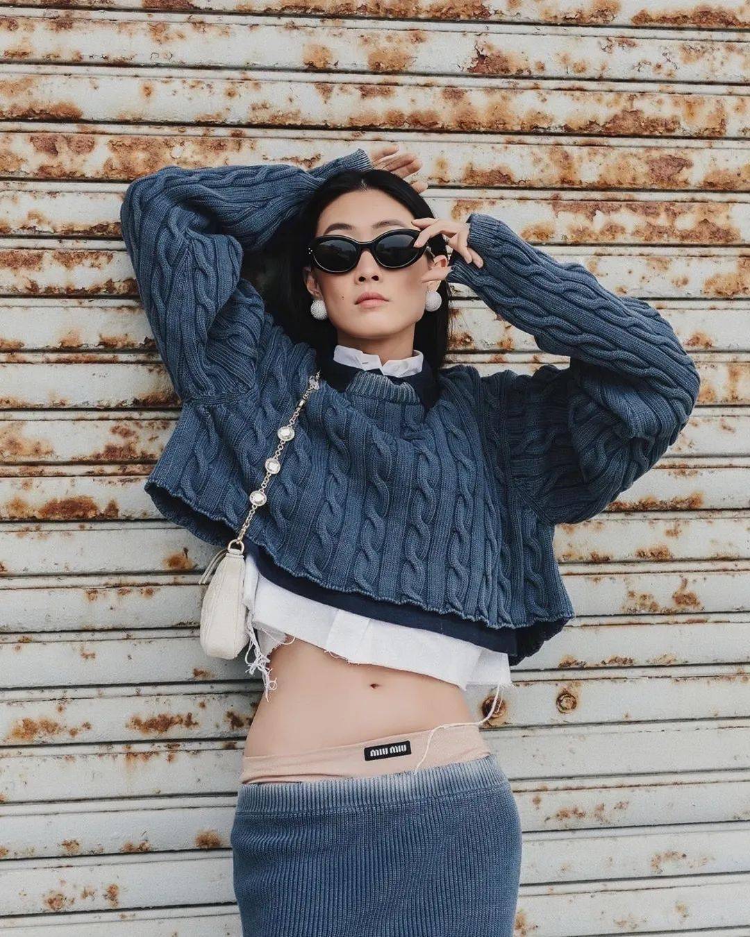 除了普通短款,也可以直接選長款針織衫配襯衫,穿出下半身失蹤效果,這種搭配在春天的出場率其實非常高。 ▼