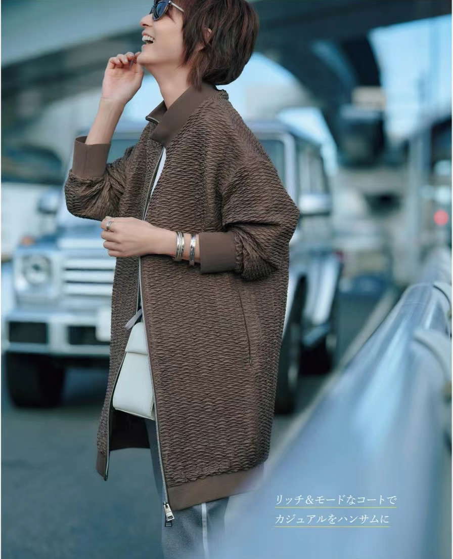 這個環節,是春天常見的外套展示。富岡佳子的休閒風,以及坦然自在的優雅女生味,通過服飾流露得恰到好處。