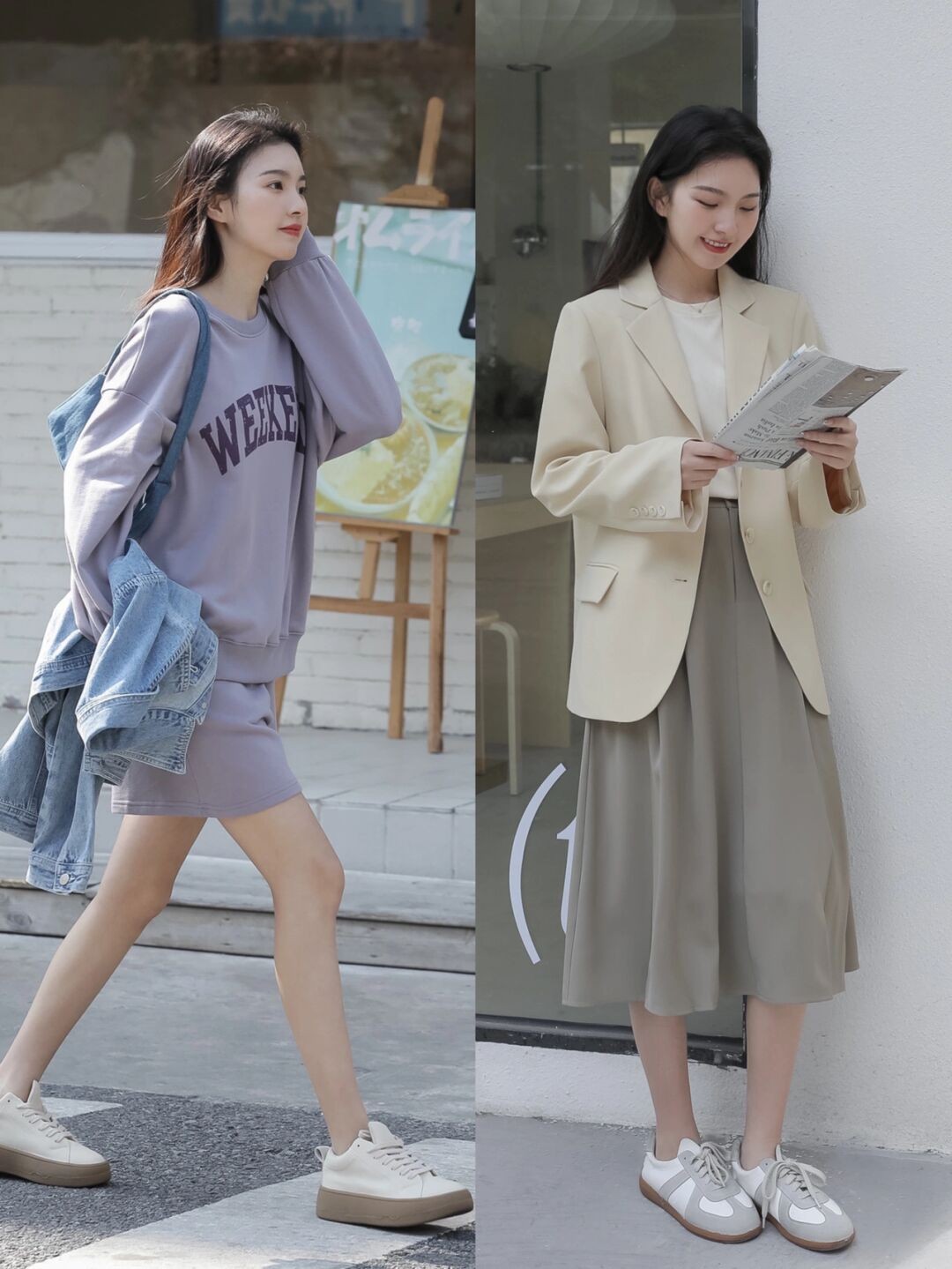 不管你是選擇衛衣,還是牛仔外套,都可以學博主去混搭裙子,看上去風格多樣化。
