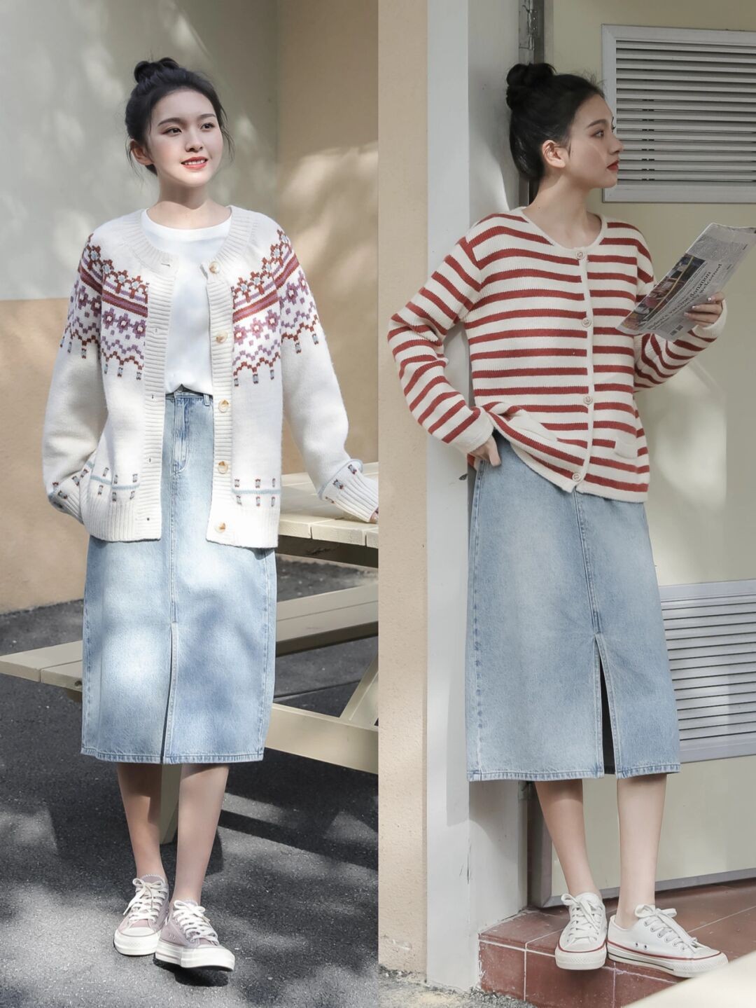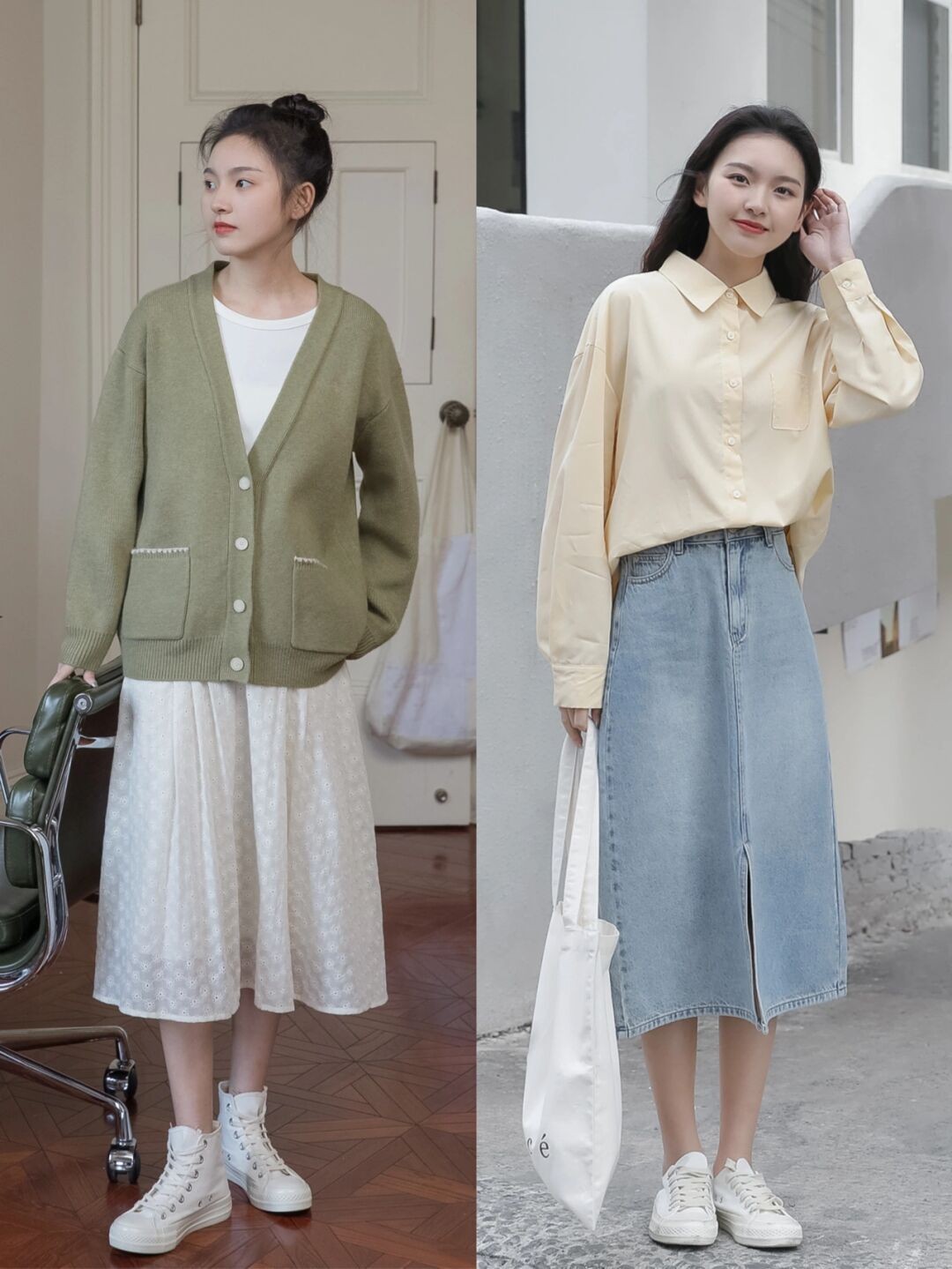 牛仔半身裙就很不錯,能夠增高顯瘦,硬挺的牛仔材質也能夠幫助我們修飾身材,而且搭配著小白鞋也特別的簡約休閒。