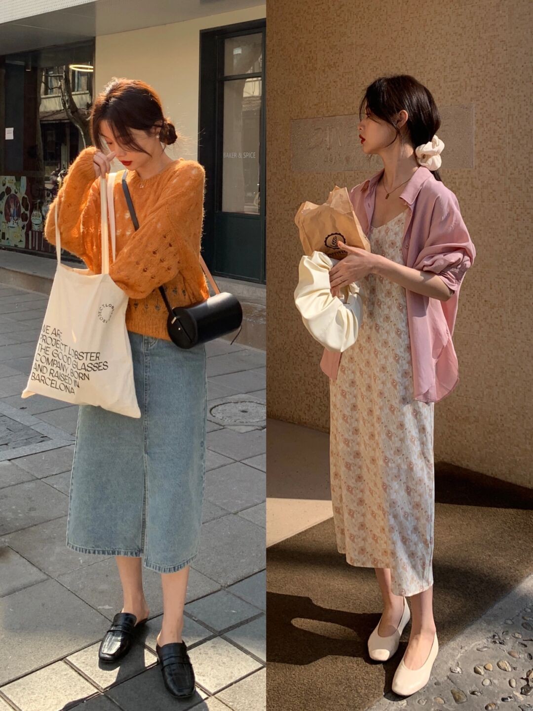 在這個季節我們可以多嘗試一些裙子的搭配,別穿太沉悶,那麼長褲盡量就避免吧。像下面這種裙裝的穿搭更能夠凸顯溫柔的氣息,薄紗的材質也比較輕盈,穿在身上會顯得很浪漫。