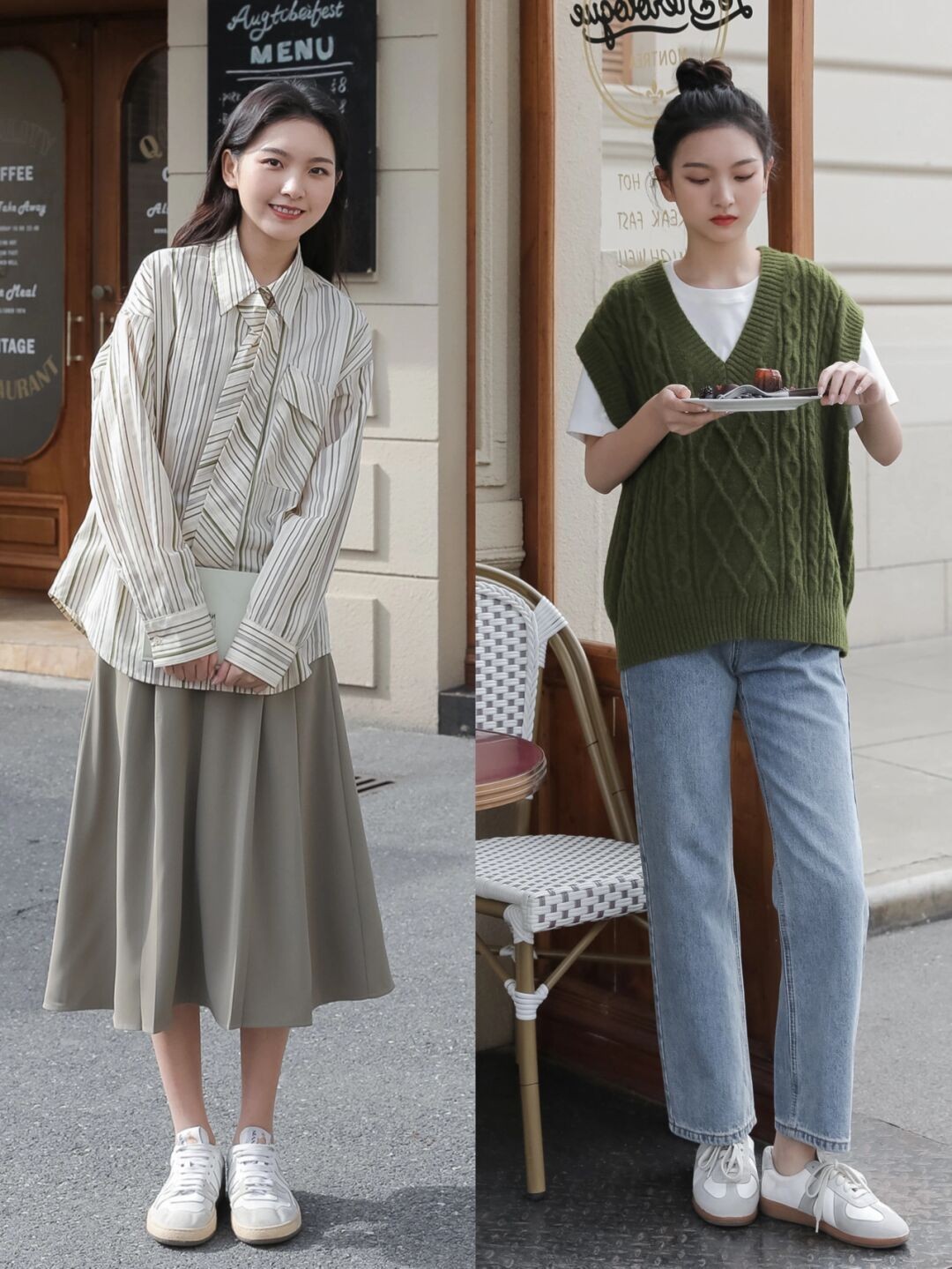 要是不知道應該如何搭配,可以選擇一件無袖的針織馬甲,針織馬甲的穿搭總是自帶文藝架式,看上去很輕鬆。