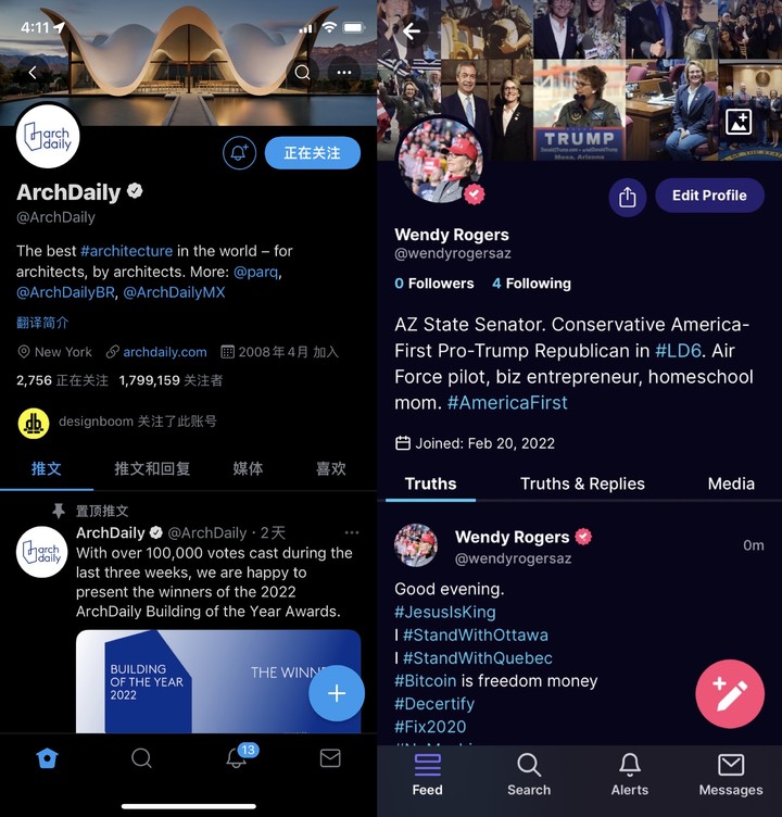 ▲ 左:Twitter,右:Truth Social