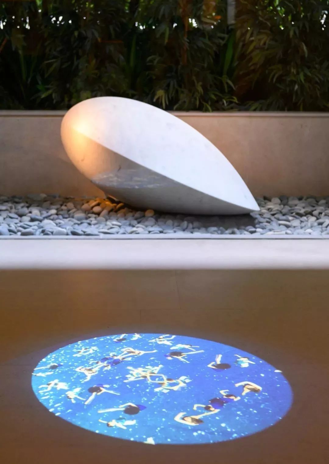 眾所周知,奕居酒店是遠古酒店旗下居舍系列的旗艦店,它以眾多雕塑和藝術作品和私密雅致的設計為人們所熟知,在這裡舉辦相對「大規模」的藝術展尚屬首次。當晚前往觀展的人們在大堂、甚至室外花園欣賞著這些光影帶來的美妙觸覺。身穿華服的賓客們似乎很滿意這場薄暮的雞尾酒派對,盡管西裝革履,天氣悶熱倒也不是令人困擾之事。