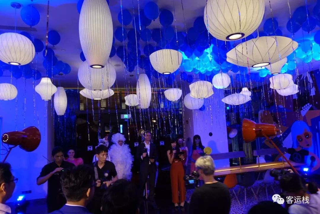 我到達的那天晚上,這裡正在派對中:巨大的白色遊龍燈下,人們戴著閃著霓虹色彩的眼鏡 ,捧著雞尾酒,杯子裡還漂浮著發光的「冰塊」,喝著聊著打鬧著,跟多個身穿誇張服飾的模特拍照——酒店號稱把入住的客人分成28型人格,而這些就位列其中。
