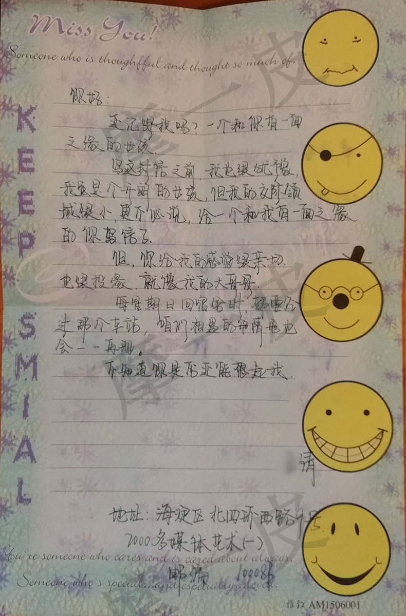 我有點著急了,看來我的兩封信她都還充公到。我仔細核對了她給的地址「海淀區北四環西路9號」,並沒有寫錯。我又給她寫了一封信,極其認真地核對了地址後寄出,然而依然是石沉大海。