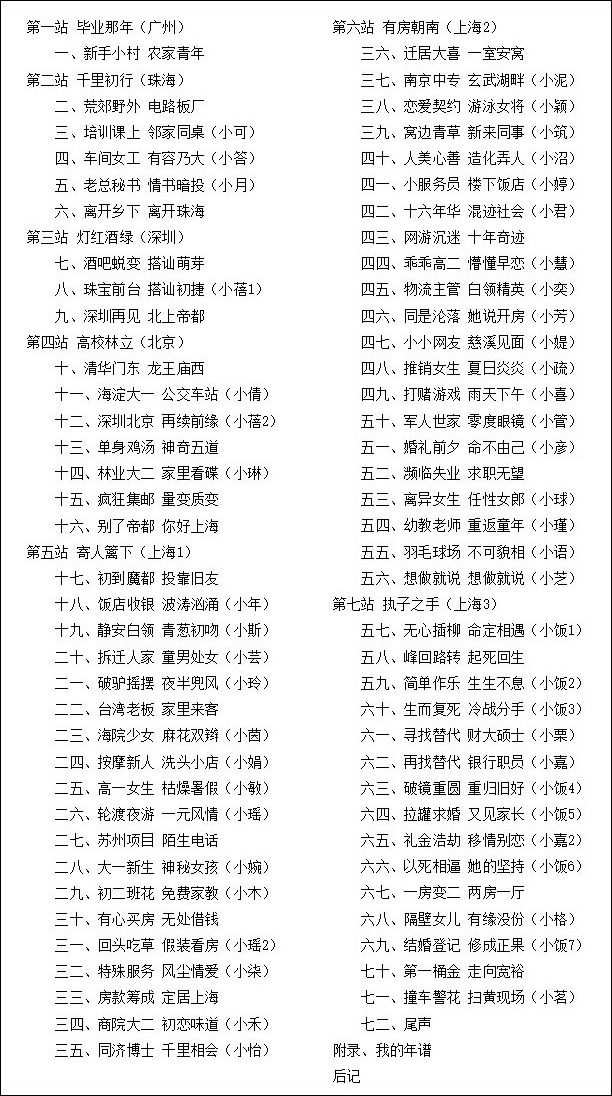 本書系作者個人自傳,根據真實經歷改編,敘述我大學畢業後,在各城市一邊流浪一邊打工時的情感經歷。因我又窮又矮又性格內向,所以找女朋友很困難,但我又堅持要找一個好看的老婆,所以情路艱難而坎坷。歷經七年及四十二個女生後,終於找到那個能陪我走進婚姻殿堂的她。