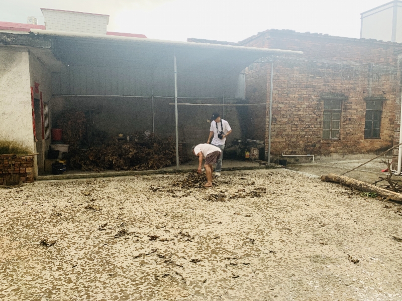小閒的家。下起雨之後,爺爺在緊急收起用於點火做菜的枯樹枝。