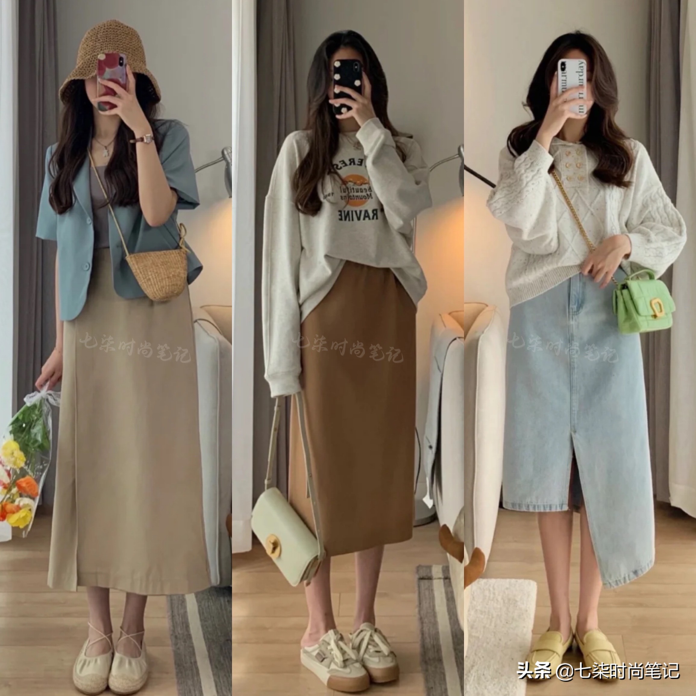 休閒舒適的衛衣,我們衣櫥裡至少都有一件,想要穿得不那麼隨意,建議可以試試搭配半裙,尤其是這種直筒半裙,將下半身包裹得很好,能夠完美修飾腿型,但又不會很緊繃。