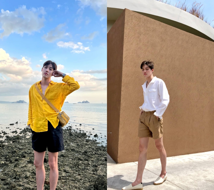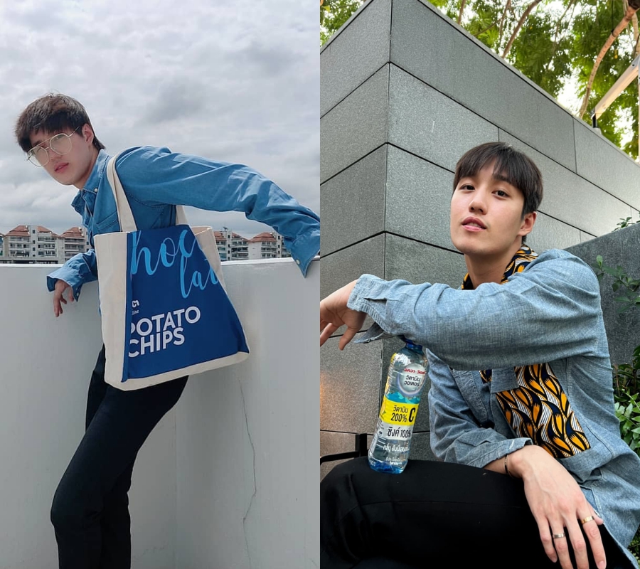 看到這裡以為這就是他所有的襯衫了嗎,no no no!身為泰國男生,花襯衫必然是不能少的。不過這兩張,他戴著眼鏡有種傻乎乎的感覺,男生們不要跟著學。