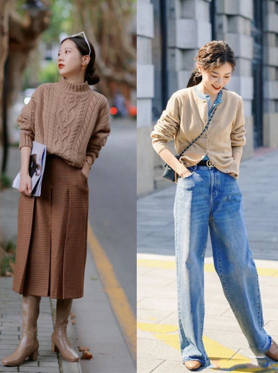 相較於裙裝搭配,用針織衫來搭配牛仔褲時,我們需要注意兩點,才能讓這套組合更有氣質。