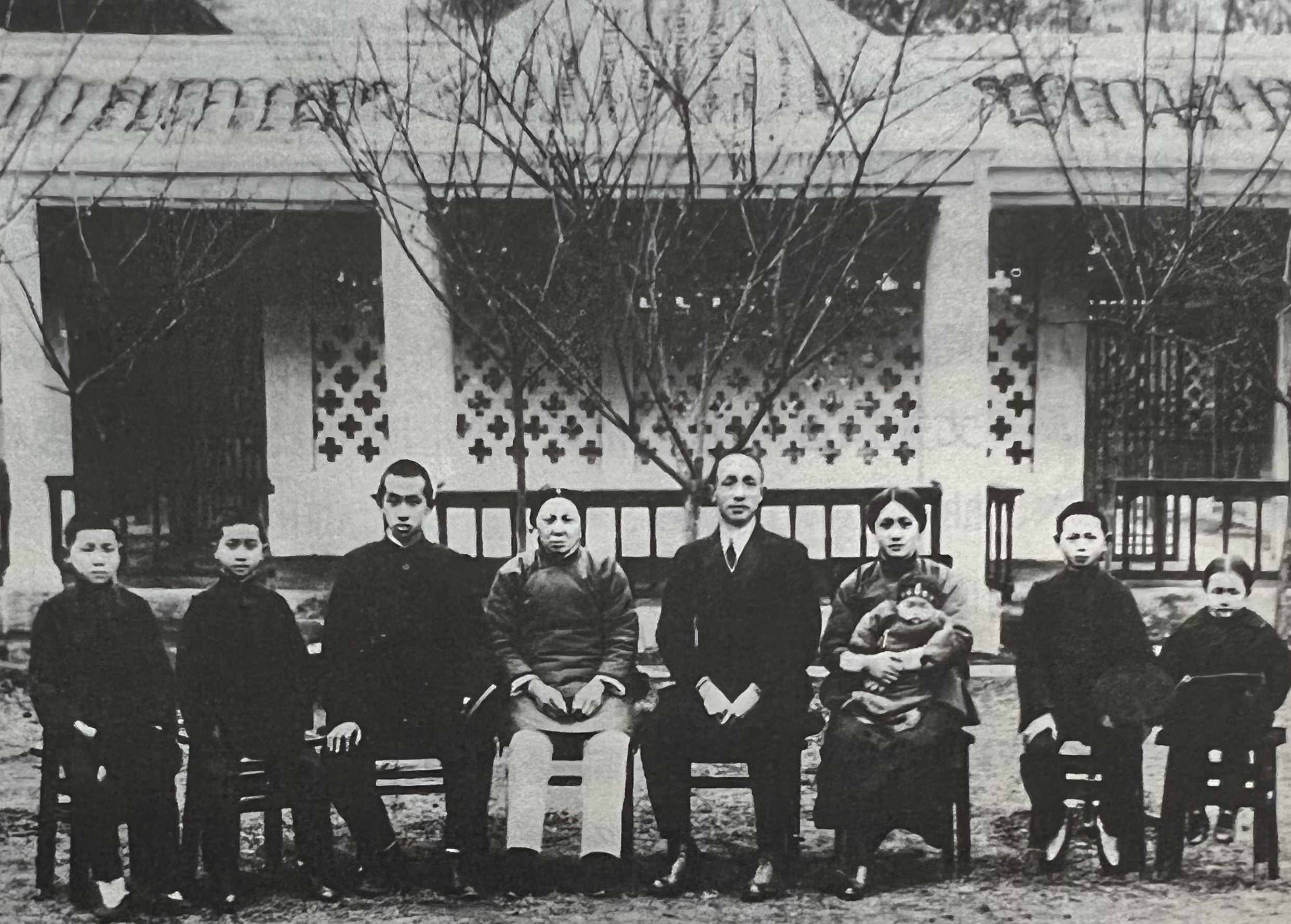 董竹君(右三)與夏之時(右四)及夏家人攝於夏家花園內