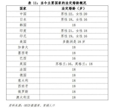 從上表可以看出,當今世界主流的法定婚齡是男女均為18歲。