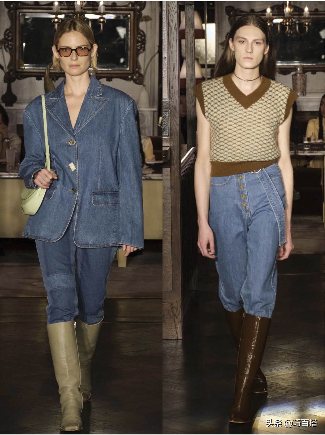 而藍色系對應的材質版型,甚至還可以延伸至其他單品,例如針織毛衣以及各種配飾。