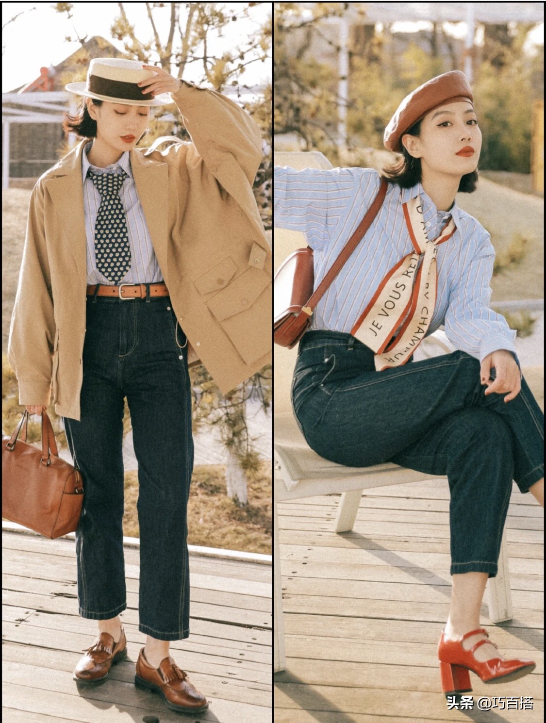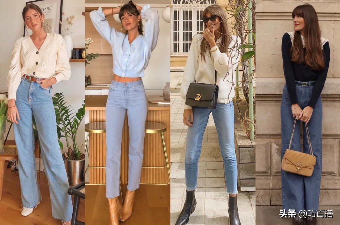 所以,牛仔褲就是怎麼也繞不開的,而藍色便是牛仔褲的色彩,把握牛仔褲穿搭,就是版型剪裁和配色搭配的關係。一般來說,我們需要從質地、線條兩個方面來看。