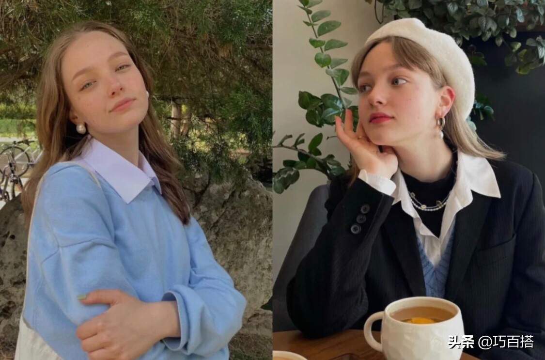 以針織毛衣為例,簡單乾淨溫柔是它的代名詞,因此更加適合溫柔掛的女生。可以看到,這類藍色系搭配版型面料都是這類風格,因此上身更加協調一致。