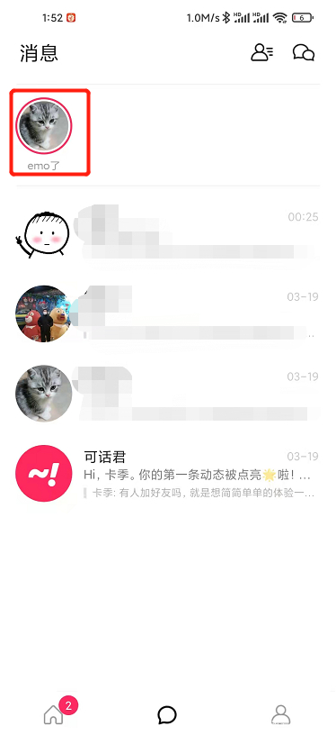 當你的好友發出動態後,系統認為你可能對他的所有動態感興趣,有點類似於朋友圈。此時無需共識,你就可以在聊天頁面頂部找到好友的動態並開始聊天。