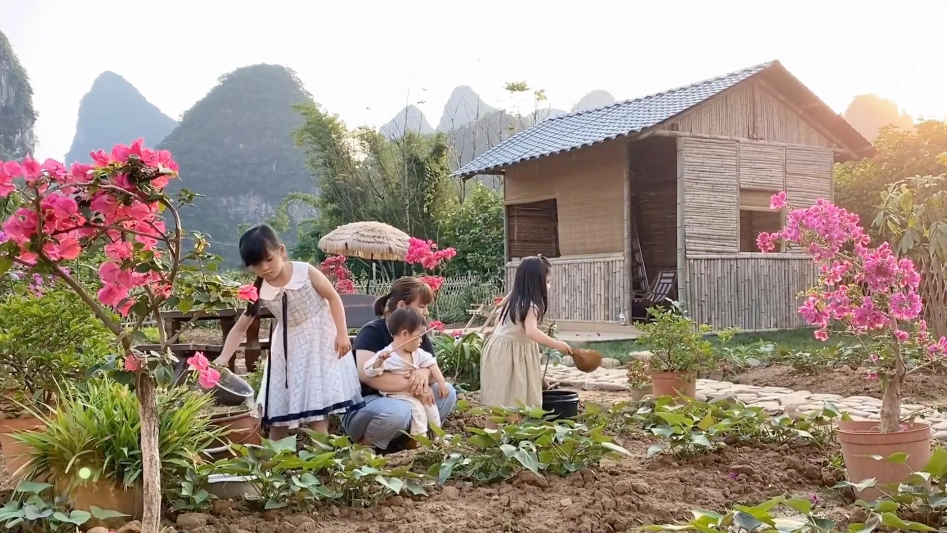 日常,小兩口會帶著孩子們苦中作樂,教她們在房前屋後淋菜,讓孩子體會生活的樂趣,養成愛勞力的習慣。