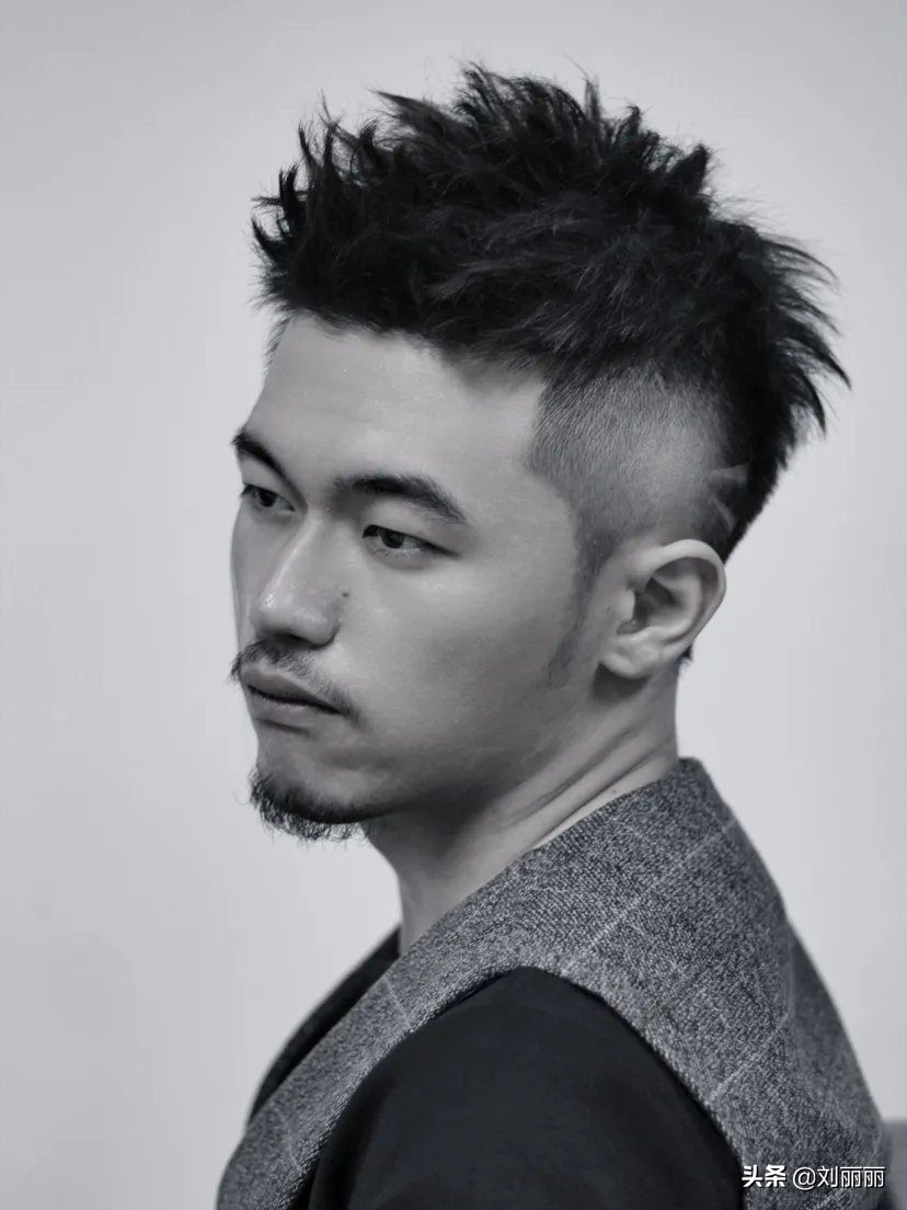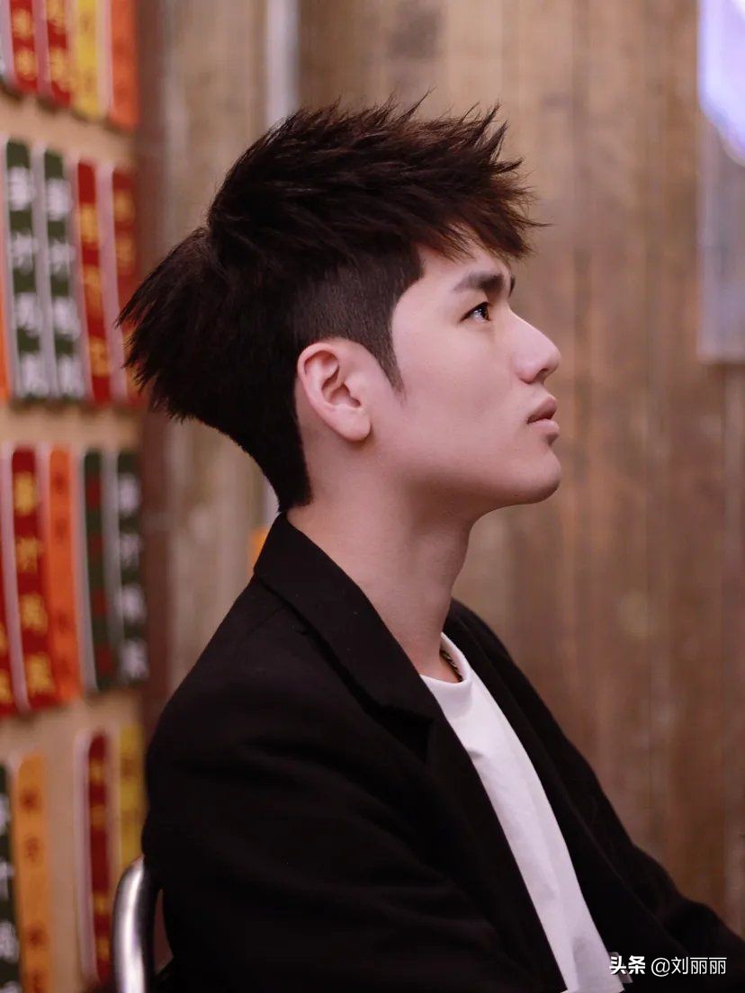 還有比較受年輕男士喜歡的前刺髮型,頂區頭髮打理出束狀的效果,髮尾形成一個尖錐造型,整體向前的流向看上去很有視覺沖擊力。