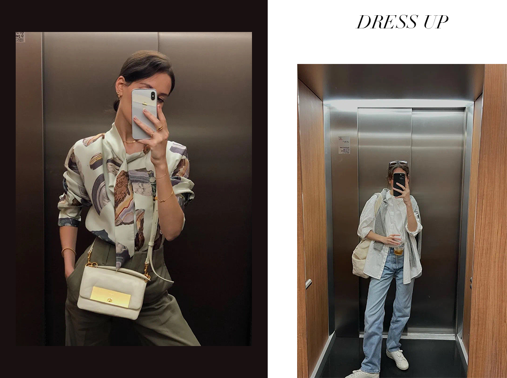 「紮頭髮」這個動作真的是百試不厭,不煩瑣又很自然,在幹練與居家之間反覆切換。