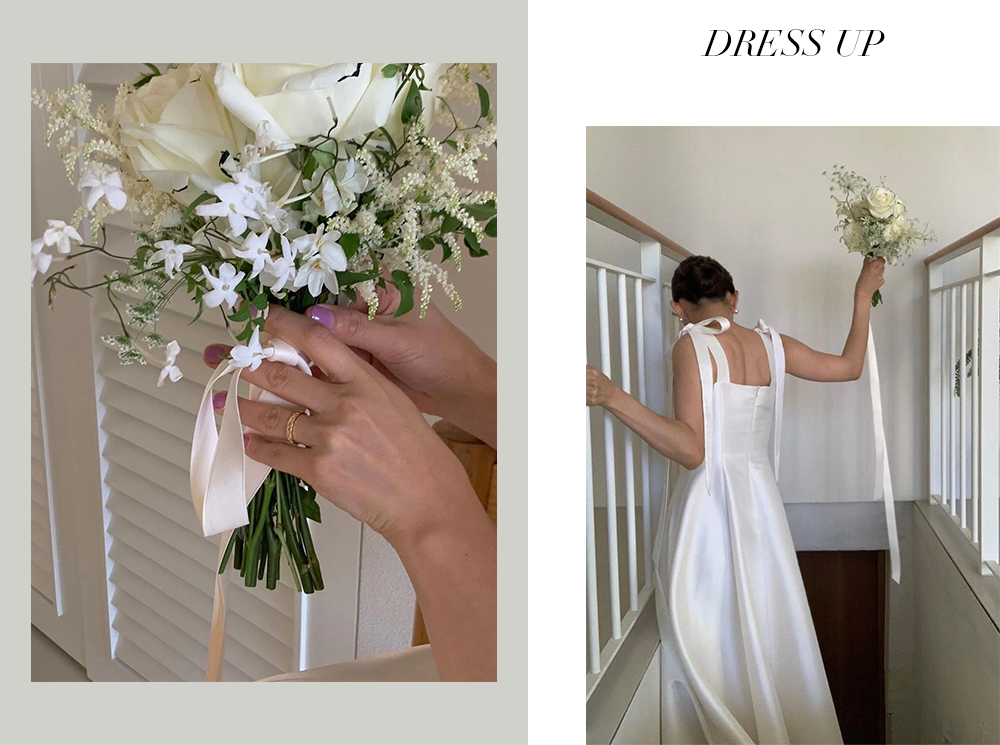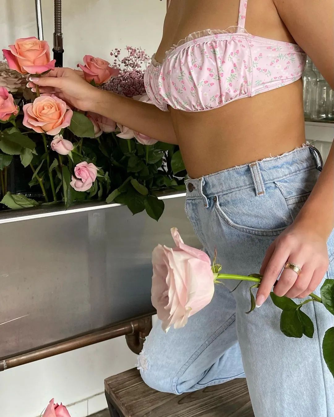 挑選出眾多花朵中最愛的一朵,發現竟和自己的top撞了花色,小細節拿捏得太到位了!