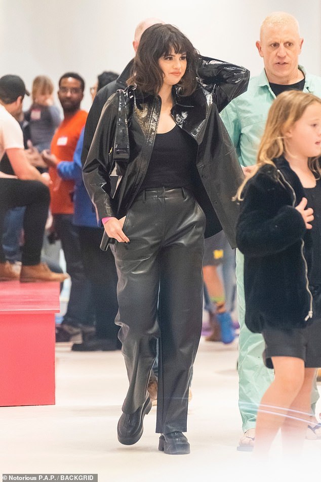 穿著皮衣皮褲走在遊樂場中的賽琳娜,也頗有摩登女郎的感覺,不得不說新髮型還是挺配她的,帶來了幾分復古的魅力。