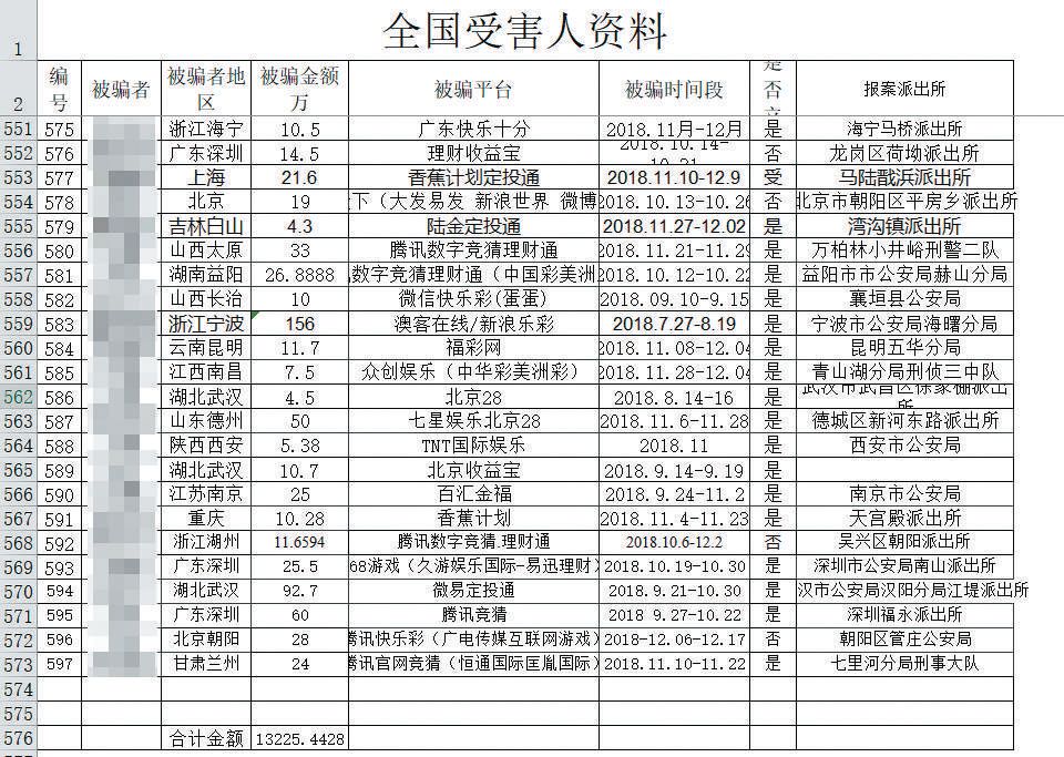 受害網友們組群統計受騙資訊,顯示有近600 人被各種名目的博彩平臺騙走1.3 億元。圖/新京報