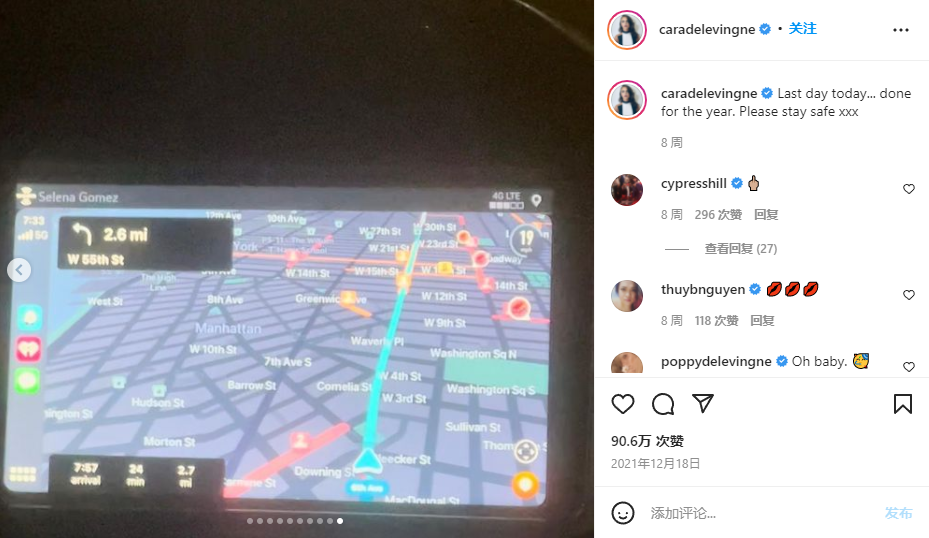 (Cara Delevingne的Ins,與那張汽車地圖一起發布)