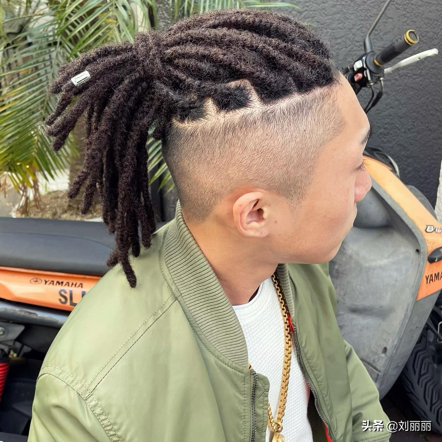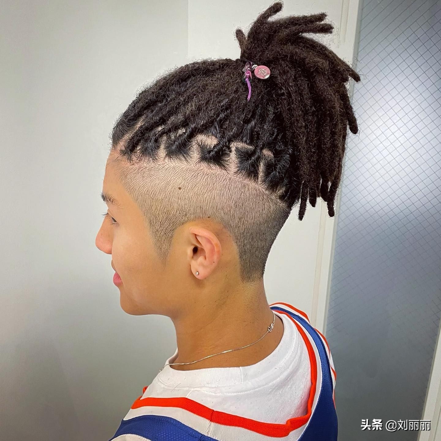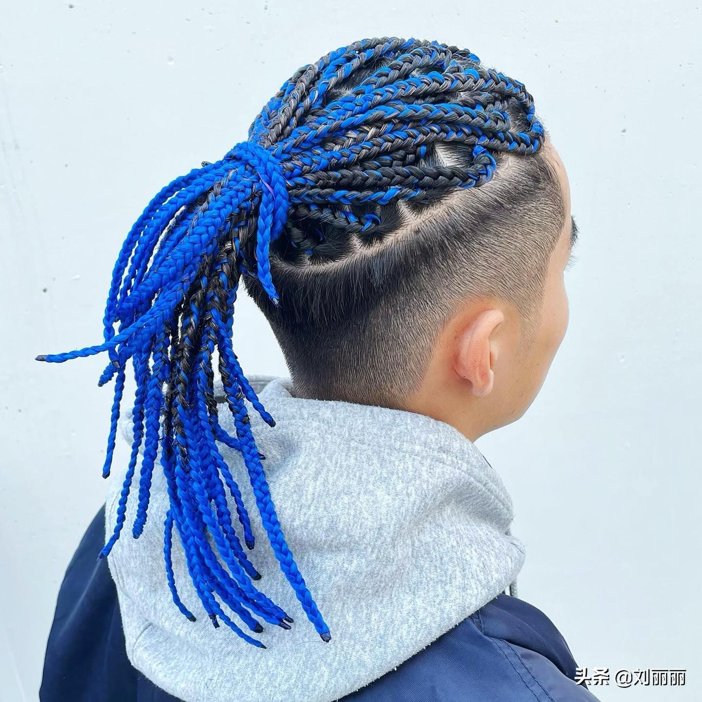 把頭頂的頭髮再燙成臟辮的效果,一根一根的造型很有視覺沖擊力,然後整體紮起來,真是帥的與眾不同。