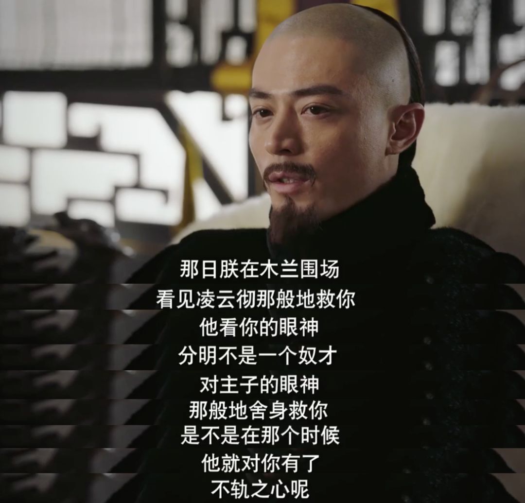 還有一次,乾隆懷疑如懿和禦前侍衛凌雲徹有私情: