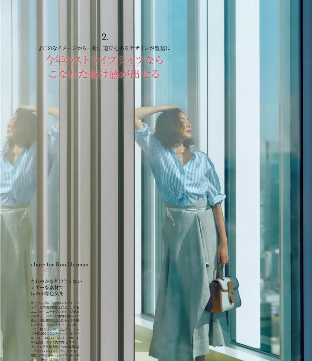襯衫有著好幾種穿搭方式,如果是過膝樣式的長款襯衫,也可以在初夏時節作為防曬的單品運用,用它包裹住大半個身軀,十分顯瘦。