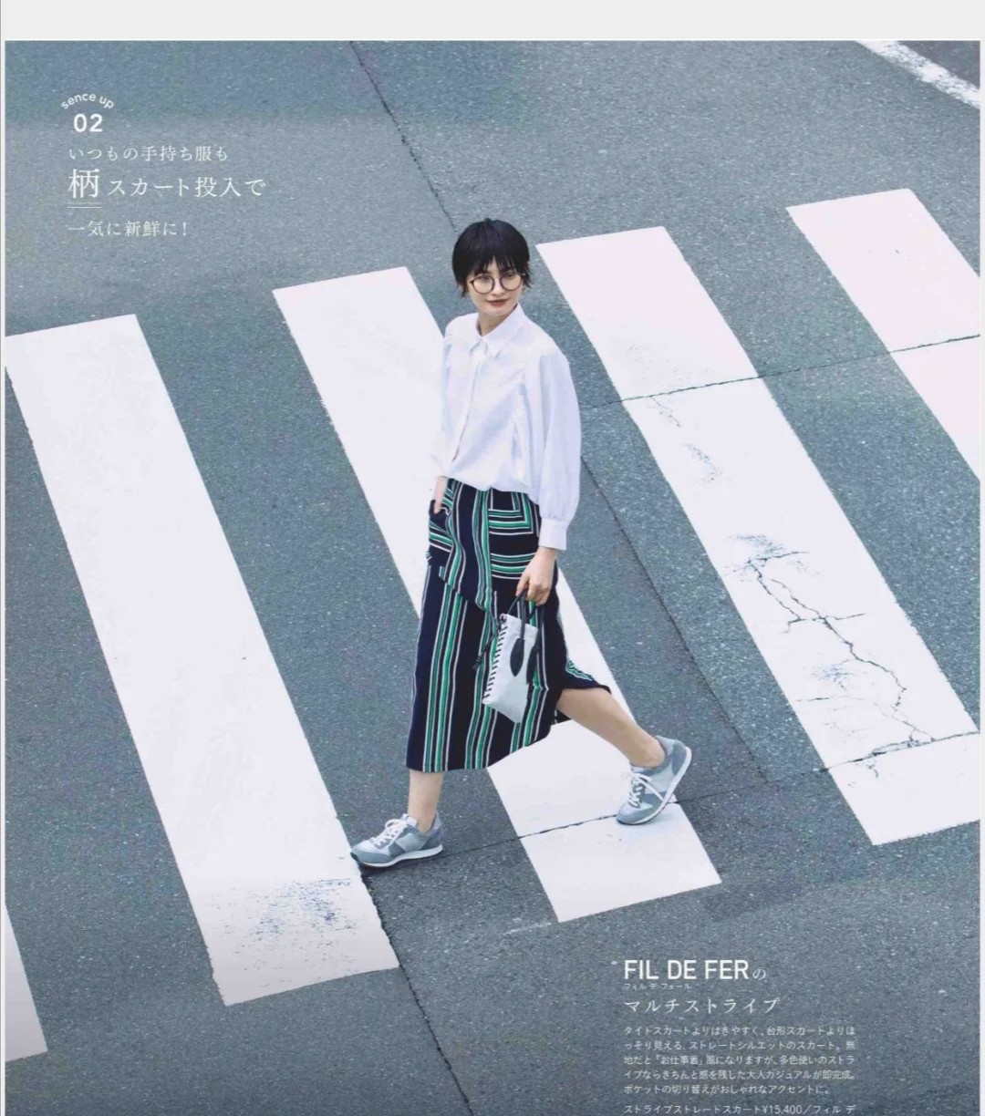 像這條裙裝,它是豎條紋的設計,讓它的外形更加的新穎。搭配一件白色襯衫,形成優雅且知性的美感。不過,腳踩一雙運動鞋,就能讓風格有了扭轉,造型變得更舒適。