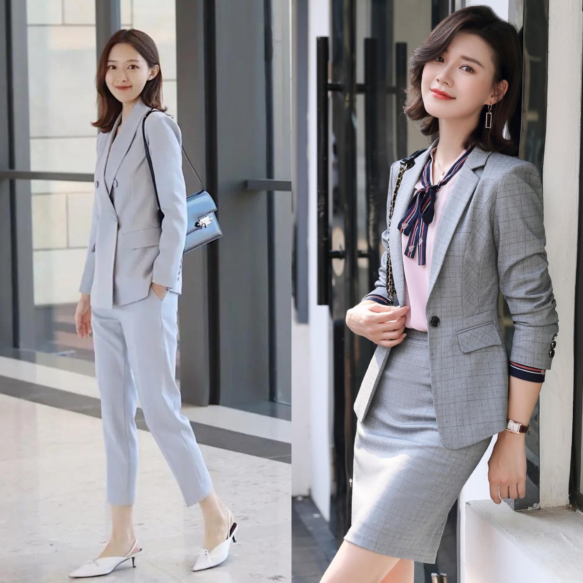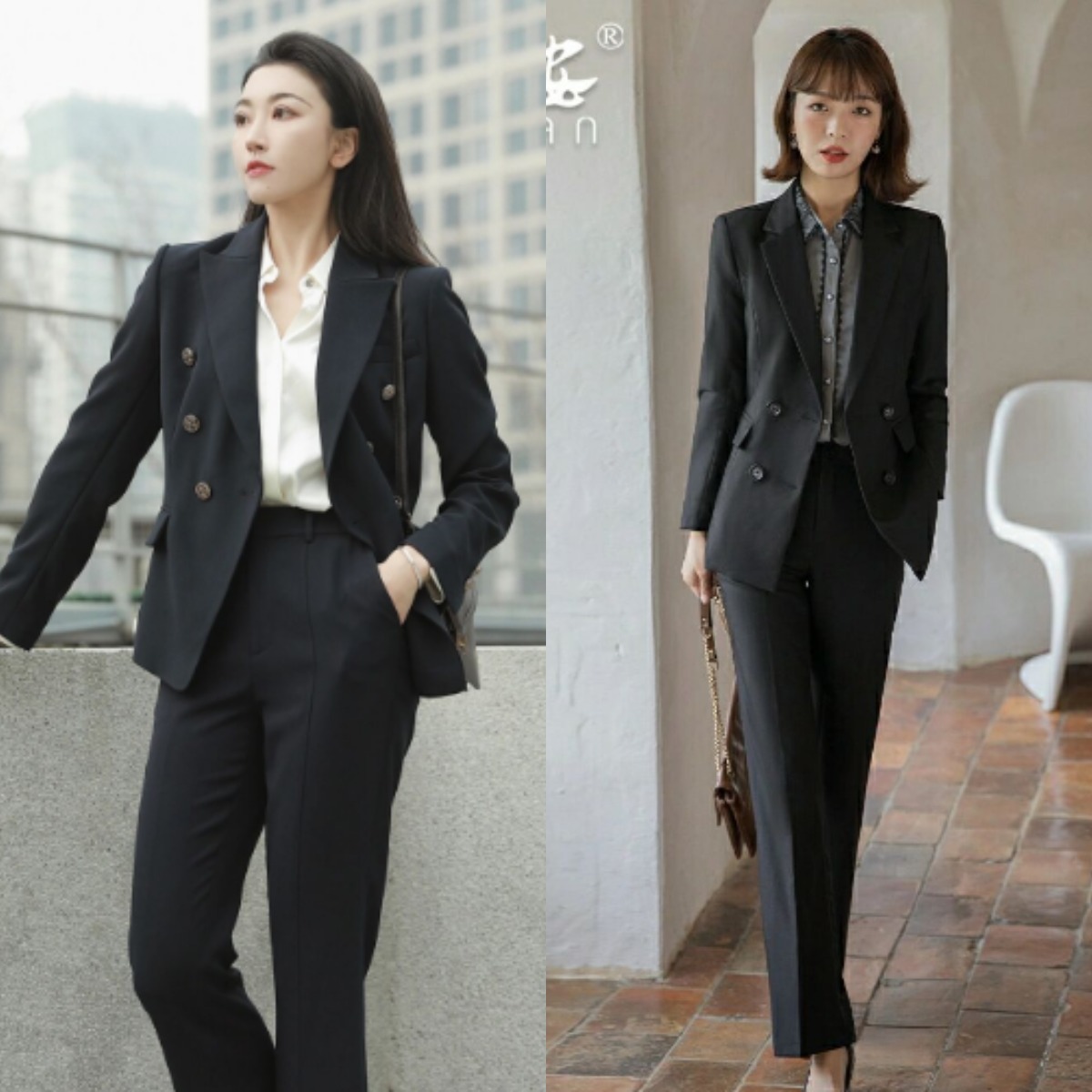 因此必須改變這種呆板懶散的穿搭方式,選擇一套合身的版型是必不可少的,特別是對女性而言,合身的西服可以展現身材的曲線感,放大自身的優勢,同時也能更好的展現出成熟的女生味。